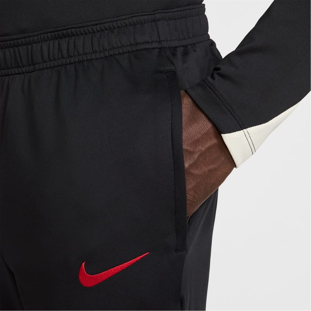 Take your game to the next level with the Nike Liverpool Strike Tracksuit Bottoms for the 2025/26 season featuring the iconic red team colour details and the signature Nike Swoosh, showcasing your unwavering commitment to the Liverpool team whilst perfecting your skills on the pitch with high-quality design.