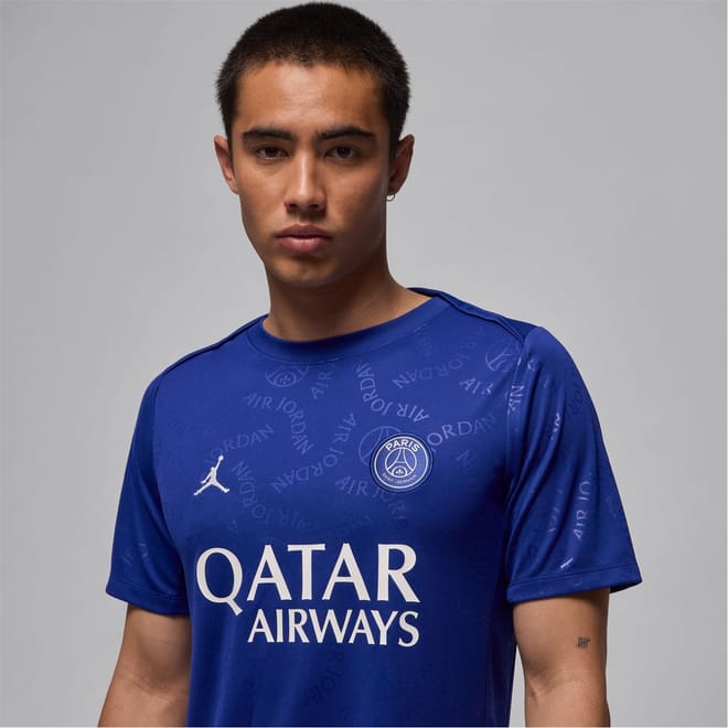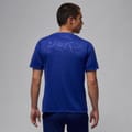 This Nike PSG top features a crew neck and short sleeves, offering a regular fit. The design includes a graphic print and a logo embellishment, making it a standout piece for sporting activities. Licensed and crafted with attention to detail, this top combines style and functionality seamlessly. -