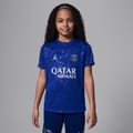 This Nike PSG top features a crew neck and short sleeves, offering a regular fit. The design includes a graphic print and a logo embellishment, making it a licensed piece for fans. Ideal for showcasing your support in style. -