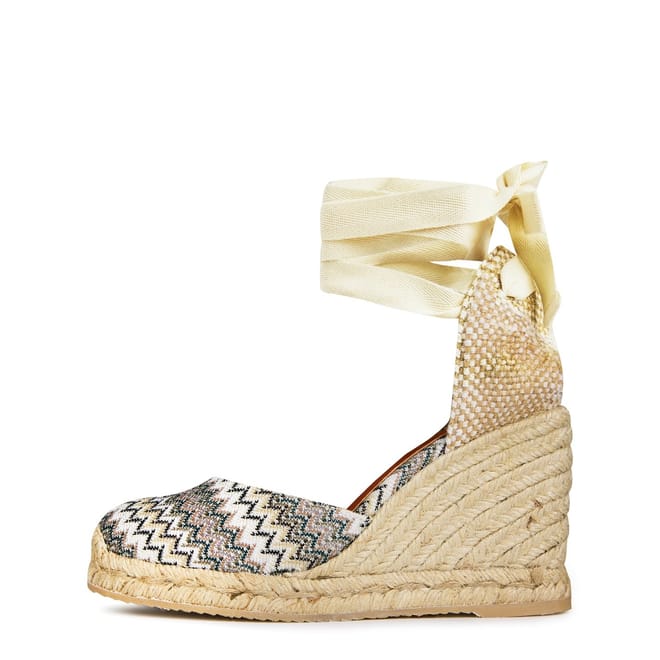 Elevate your holiday wardrobe with these striking Eva Wave Espadrilles from Missoni. Designed to be eye-catching, these women's shoes are secured with darling tie fastenings at the ankles and are perfect for making a statement by the pool or for meeting a loved one for an al fresco dinner under the stars.