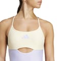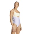 Dive into style with this adidas one-piece swimwear, perfect for swimming enthusiasts. Featuring a striking color block pattern, this swimwear is designed with a cross back and tie back closure for a secure fit. The iconic logo embellishment adds a touch of brand recognition, making it a standout piece in any swimming collection. -