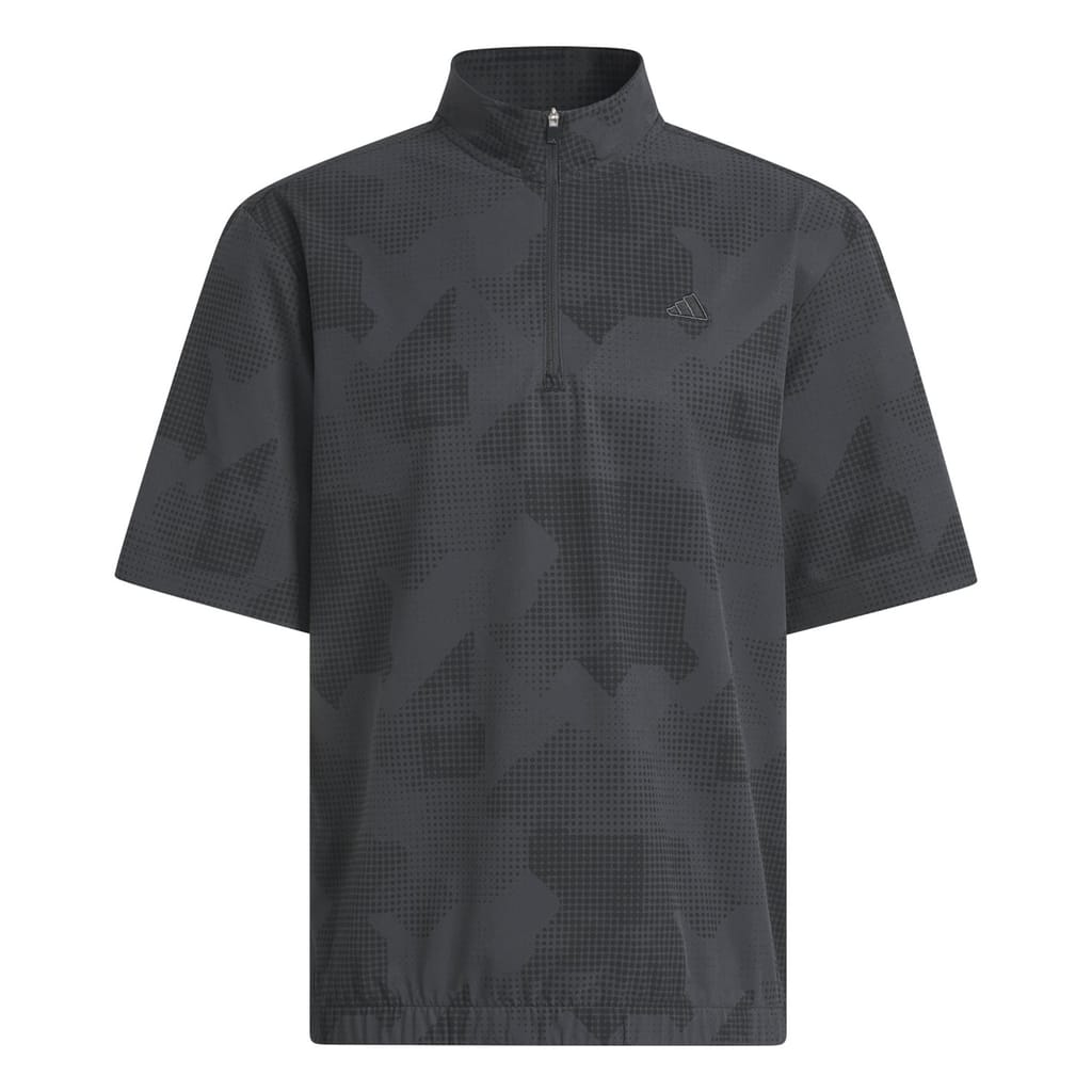 This adidas top features a short sleeve design with a convenient zipper closure. Crafted for performance, it boasts durable and water-repellent attributes, making it a reliable choice for various activities. -