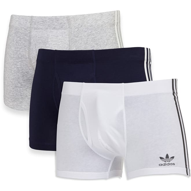 Comfort starts with flexibility. This stylish trunk silhouette created with sustainable soft cotton stretch keeps you dry while staying new longer. The chafe free design, emblazoned with contrasted logo and signature 3 stripe screen print sides move with you throughout the day and won't hold you back. Boxer shorts with trefoil logo at front and 3-stripe down the side. 95% Cotton, 5% Elastane -
