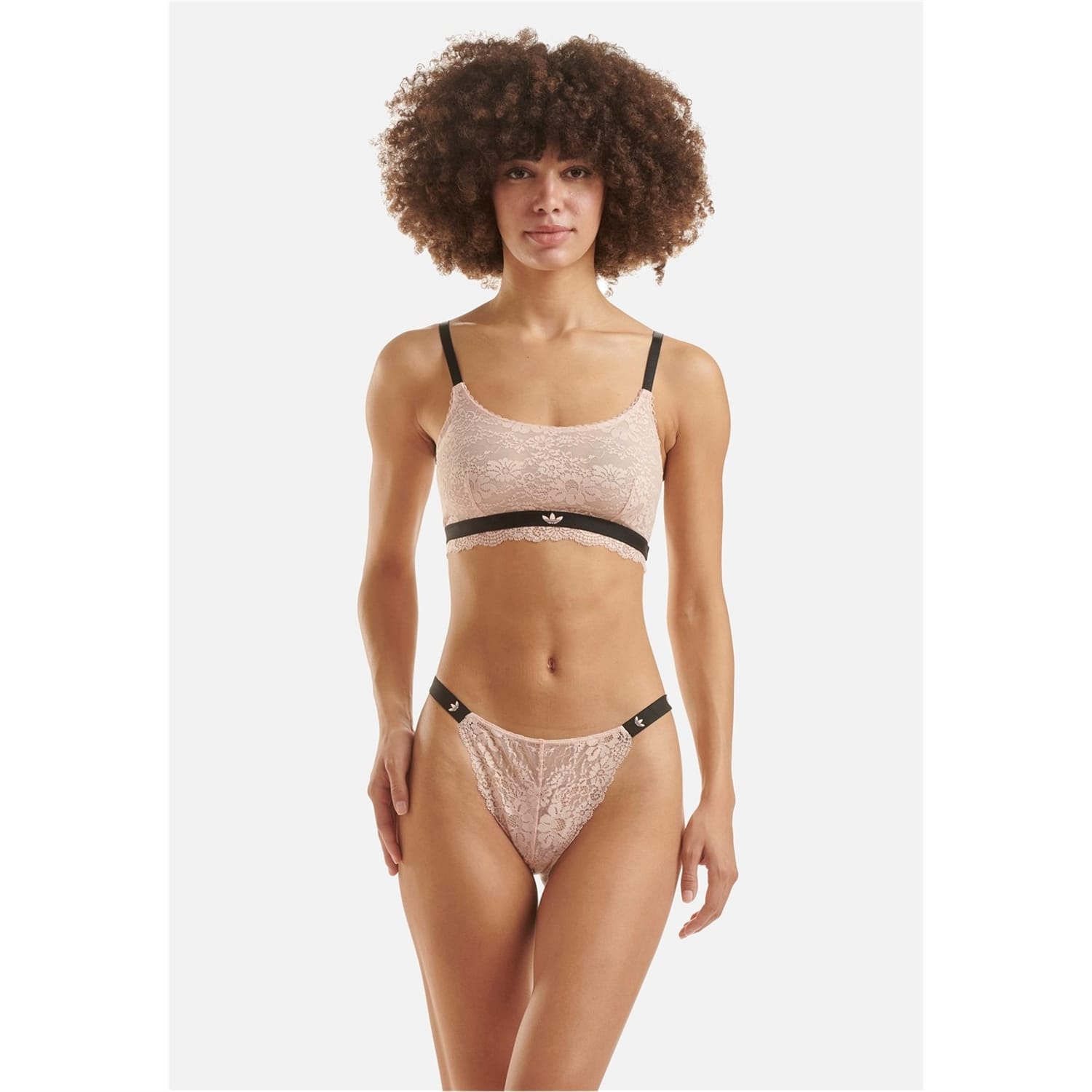 Sport meets sophistication with this lace bralette. Fabricated from recycled yarns, this piece is sustainably built and designed to last. Featuring a mesh back for added comfort and a pull on closure with adjustable straps for the perfect fit on every body. Adidas trefoil logo in rubber at front of bra. 86% Polyamide, 14% Elastane. -