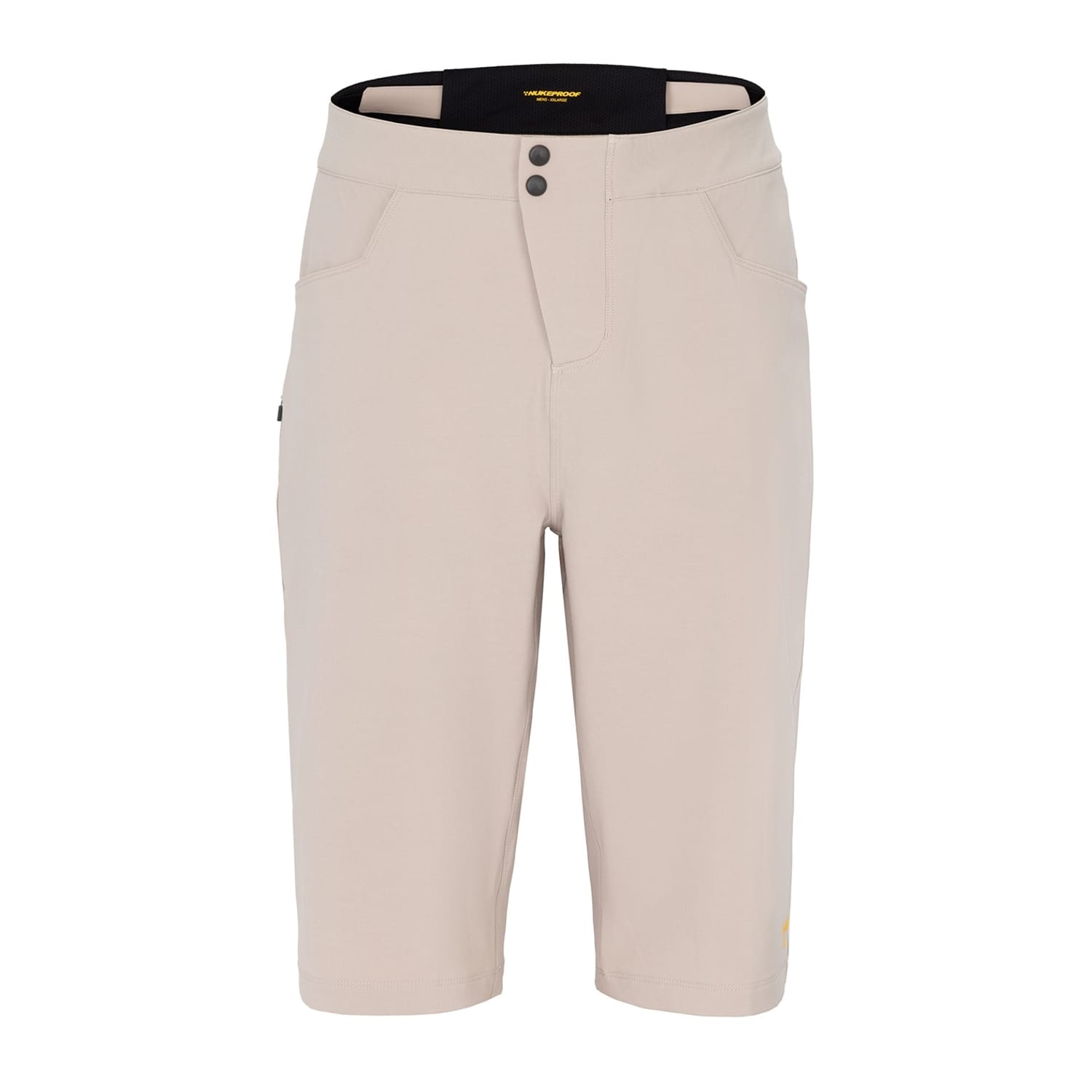 Discover the Nukeproof biking bib shorts, designed for activewear enthusiasts. These solid shorts feature a button and zip fly closure, ensuring a secure fit. The logo embellishment adds a touch of brand identity, making them a stylish choice for cycling activities. -