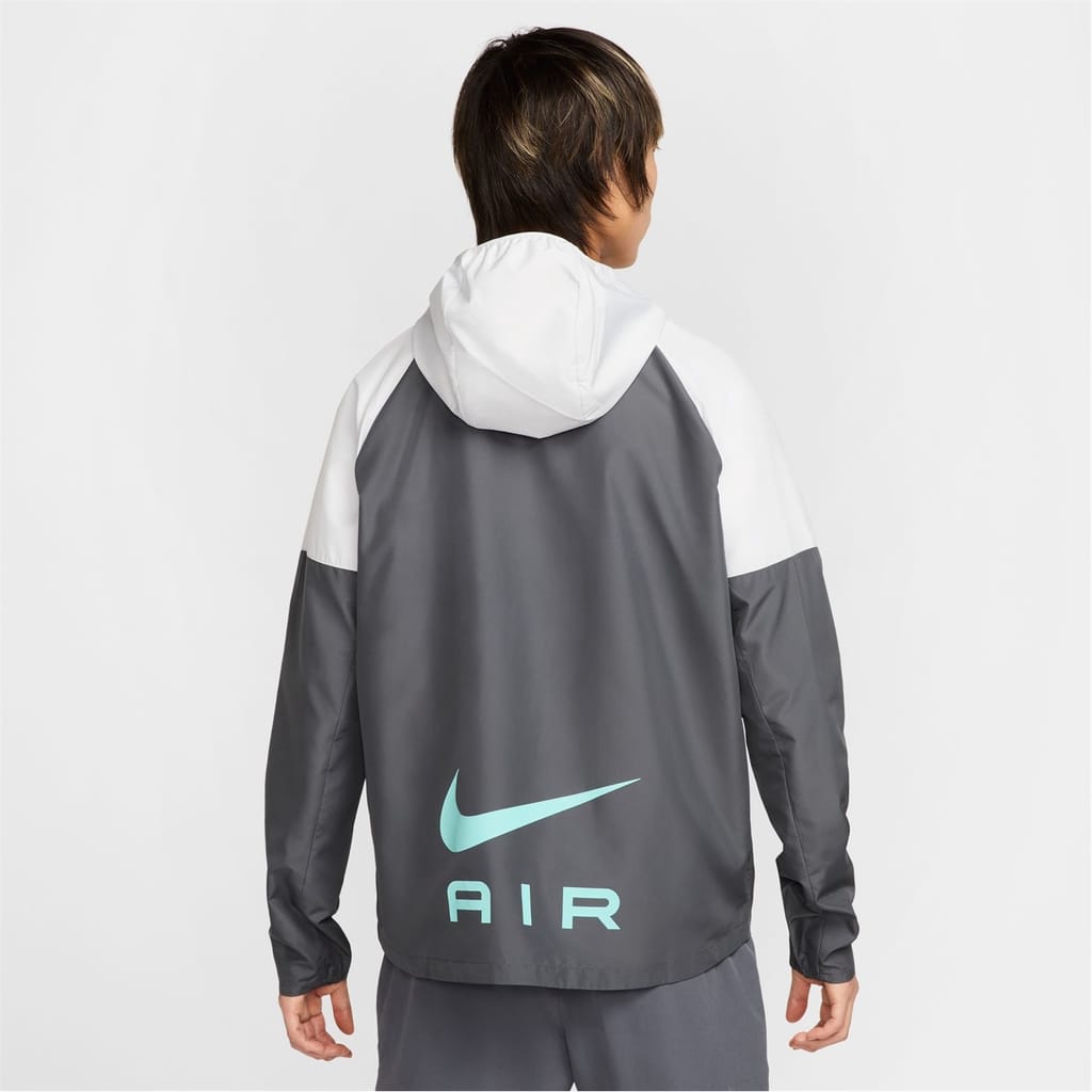 Elevate your activewear collection with the Nike windbreaker jacket. Featuring a hooded neckline and raglan sleeves for enhanced movement, this jacket combines style and functionality. The color block pattern adds a modern touch, while the elasticated cuffs and zipper closure ensure comfort and convenience. Finished with logo embellishments and practical pockets, it's a perfect addition to your wardrobe. -