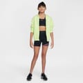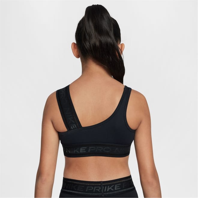 Discover Nike junior sports bra, designed for activewear and sporting activities. This sleeveless top features a scoop neck and provides a snug fit, ensuring comfort and support. Enhanced with a logo embellishment, it's an ideal choice for young athletes in need of reliable performance wear. -