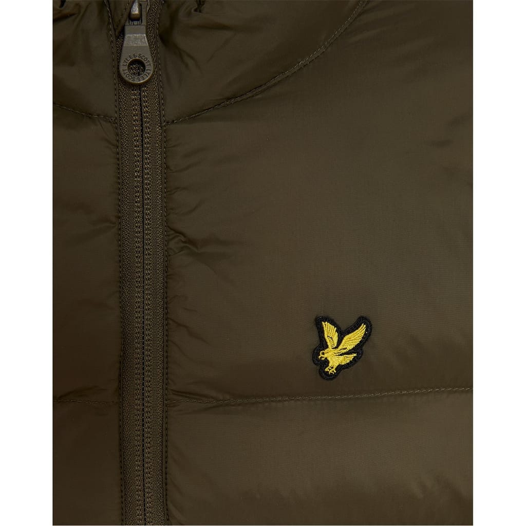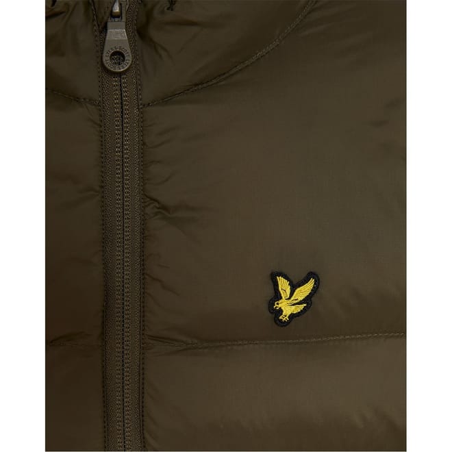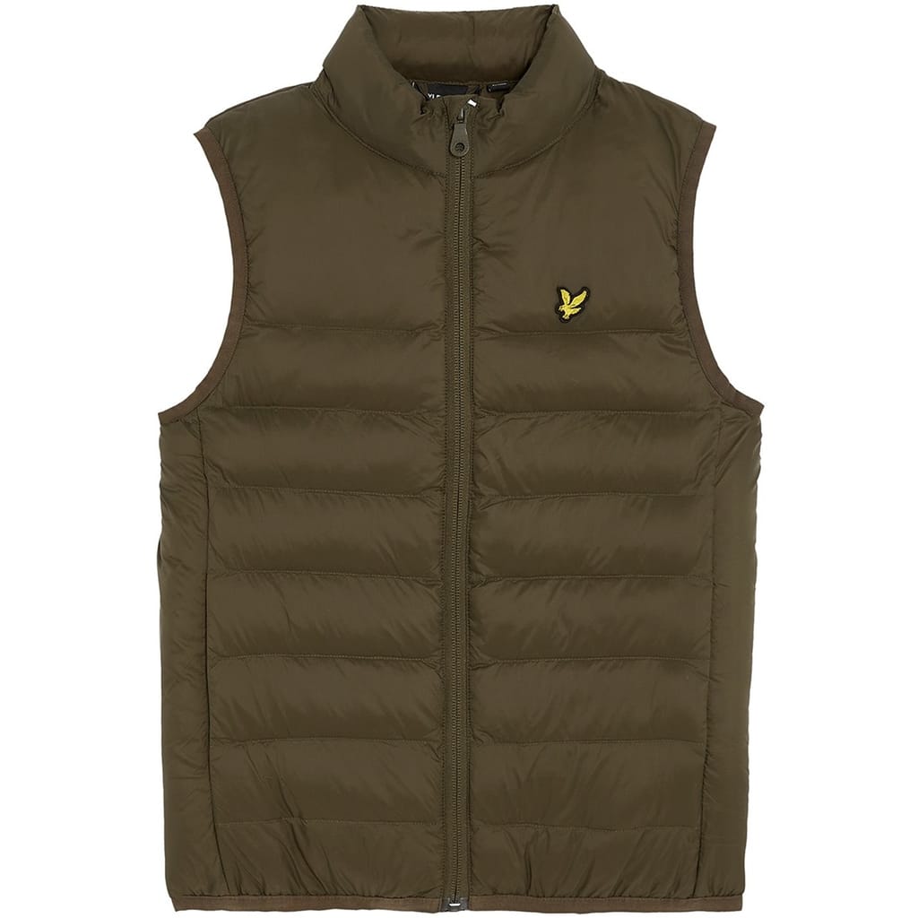 The Lyle & Scott gilet is a stylish sleeveless jacket, designed with a mock neck and a practical zipper closure. This lightweight and padded piece ensures comfort with its relaxed fit, making it ideal for casual wear. The solid pattern is accentuated with an embroidered logo, adding a touch of sophistication to the overall design. -