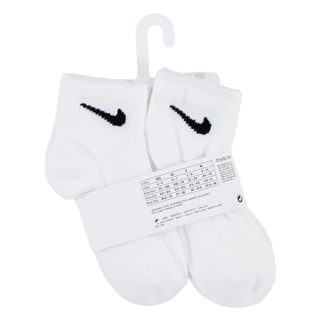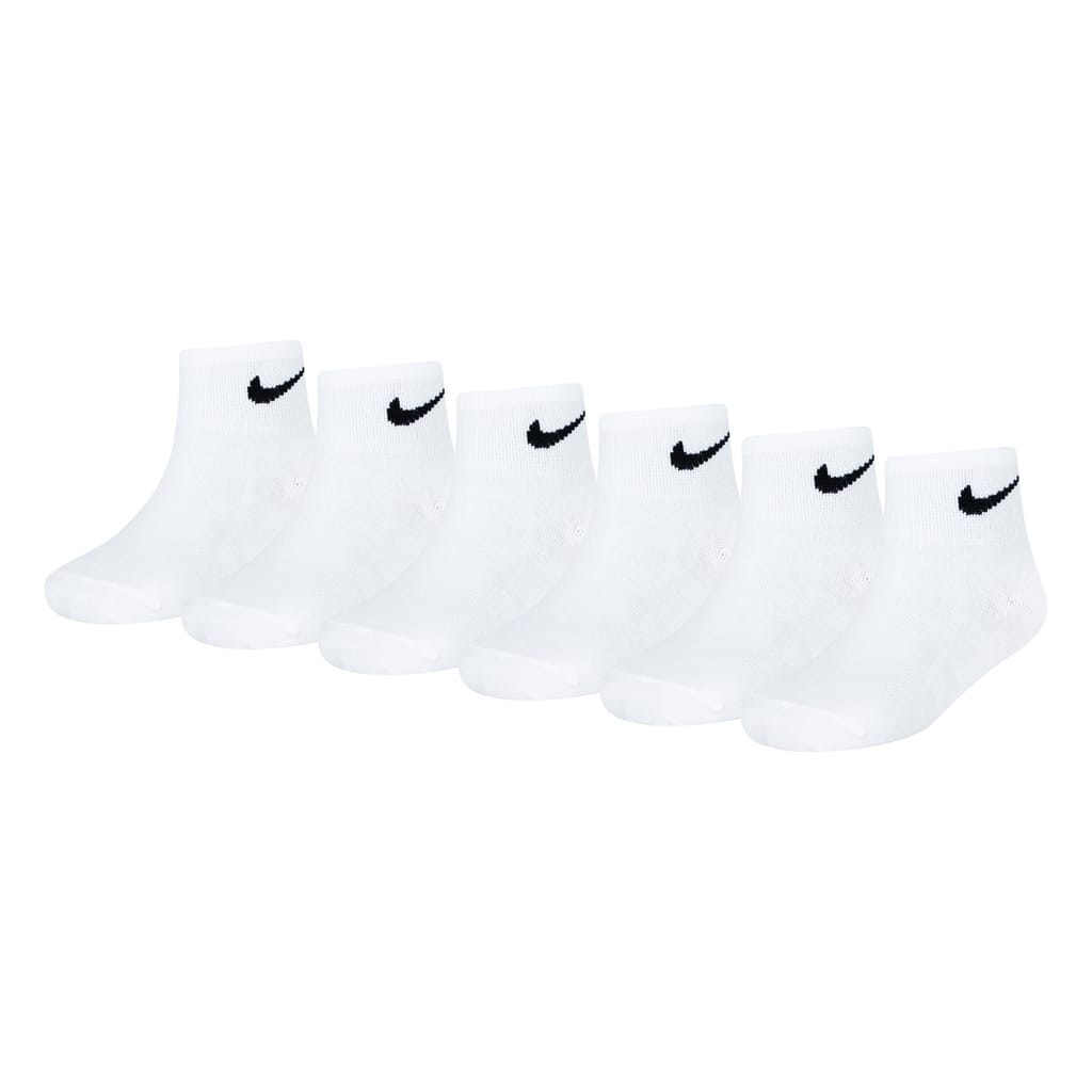The Kids Nike 6 Pack Ankle Socks are perfect for everyday wear, featuring a lightweight fabrication coupled with a ribbed trim to the top and flat lock seam to the toes that ensures all day comfort, a solid colouring along with the Nike Swoosh branding completes the look. Machine washable, follow care label instructions. -