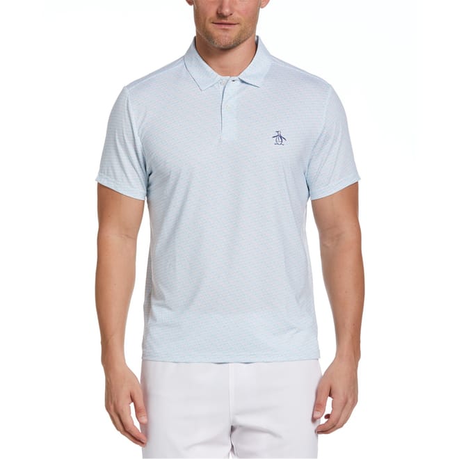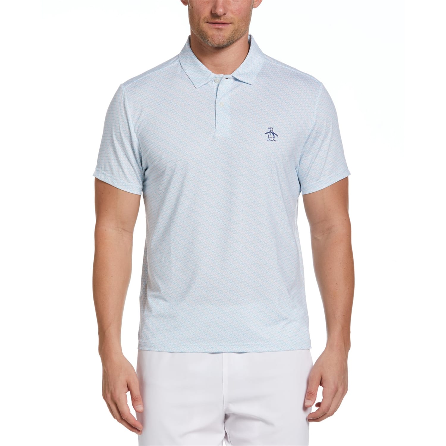 This Original Penguin polo shirt is perfect for both sporting activities and semi-formal occasions. Featuring a geometric pattern and a classic polo collar, it offers a regular fit with short sleeves. The shirt is adorned with a subtle penguin logo, adding a touch of distinctive charm. Made for performance, this button-up shirt combines style and functionality seamlessly. -
