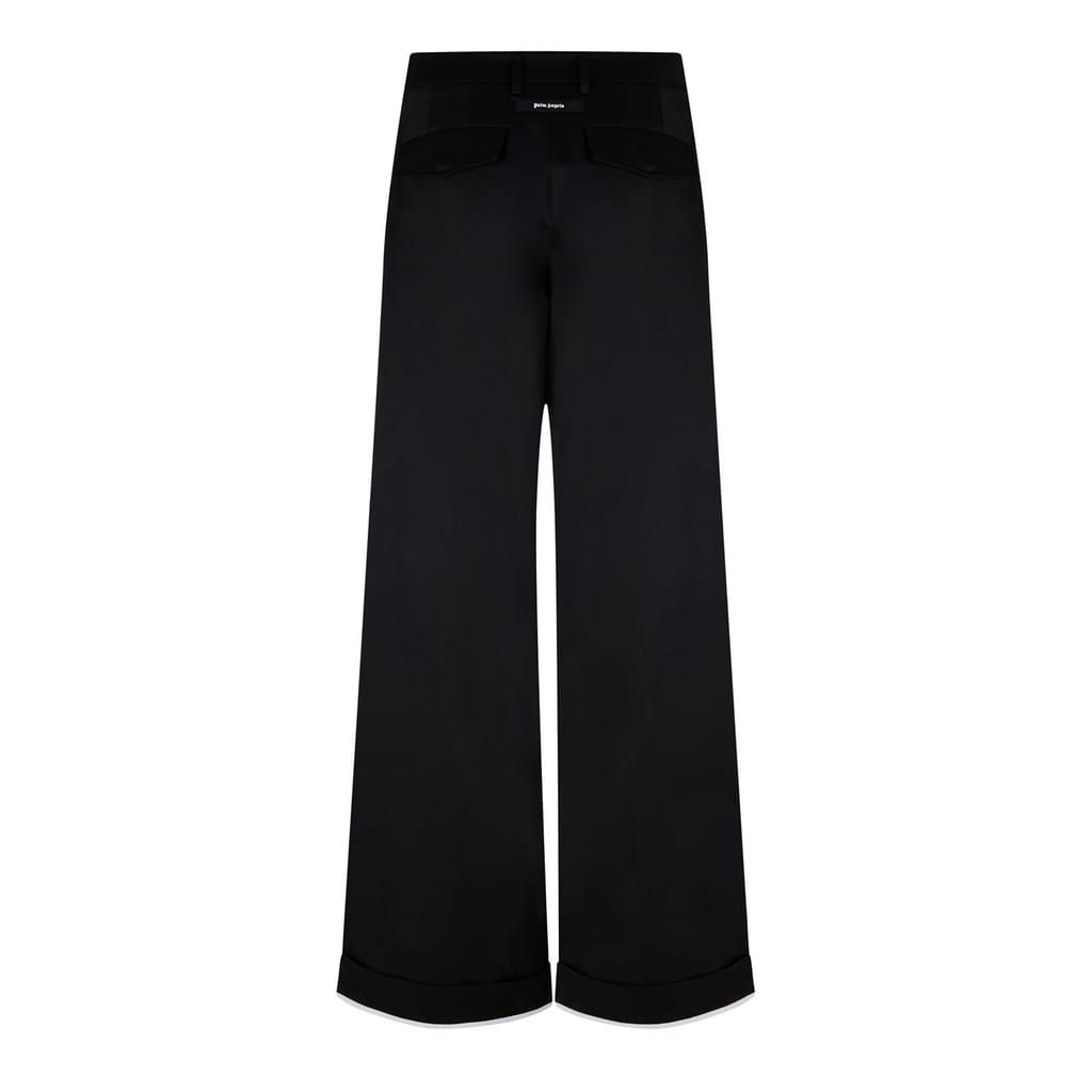 Discover the Palm Angels trousers, featuring a wide-leg cut and cuffed design for a modern silhouette. These pants come with a button and zip fly closure, ensuring a secure fit. Embellished with pockets, they offer both style and functionality. Perfect for those seeking a blend of contemporary fashion and practicality. -