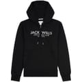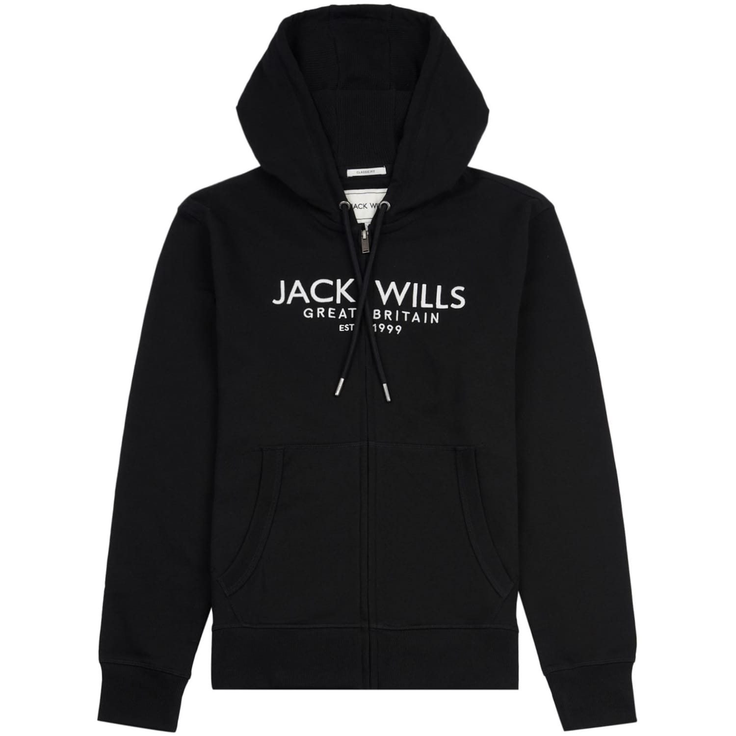 This Jack Wills sweatshirt jacket features a hooded design with a zipper closure. The regular fit ensures comfort, while the ribbed cuffs and hem add a touch of style. The solid pattern is complemented by the brand's logo and lettering embellishments, making it a versatile addition to your wardrobe. -