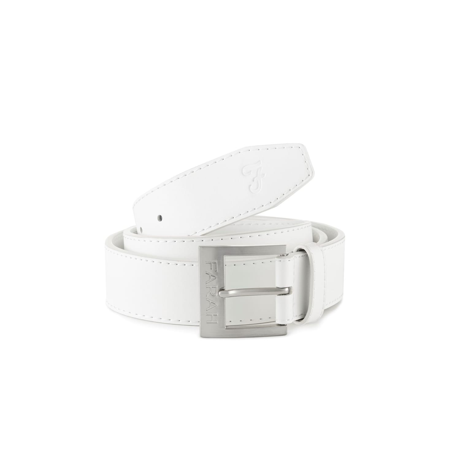 The Farah casual leather belt is a versatile accessory for any wardrobe. It features a pin buckle for secure fastening and an adjustable length for a comfortable fit. The belt is subtly embellished with the Farah logo, adding a touch of brand recognition to its classic design. Ideal for everyday wear, this belt combines practicality with understated style. -