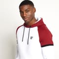 Stay stylishly comfortable with the 11 Degrees color block hoodie sweatshirt. Featuring a hood with drawstring, raglan long sleeves, and ribbed cuffs, this regular fit top is perfect for casual wear. The iconic logo embellishment adds a touch of brand recognition to your wardrobe essentials. -