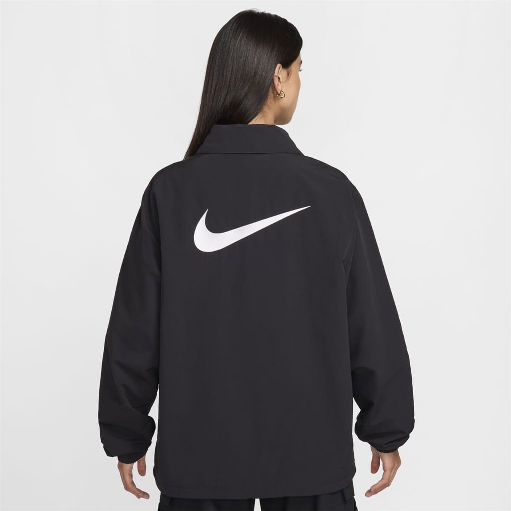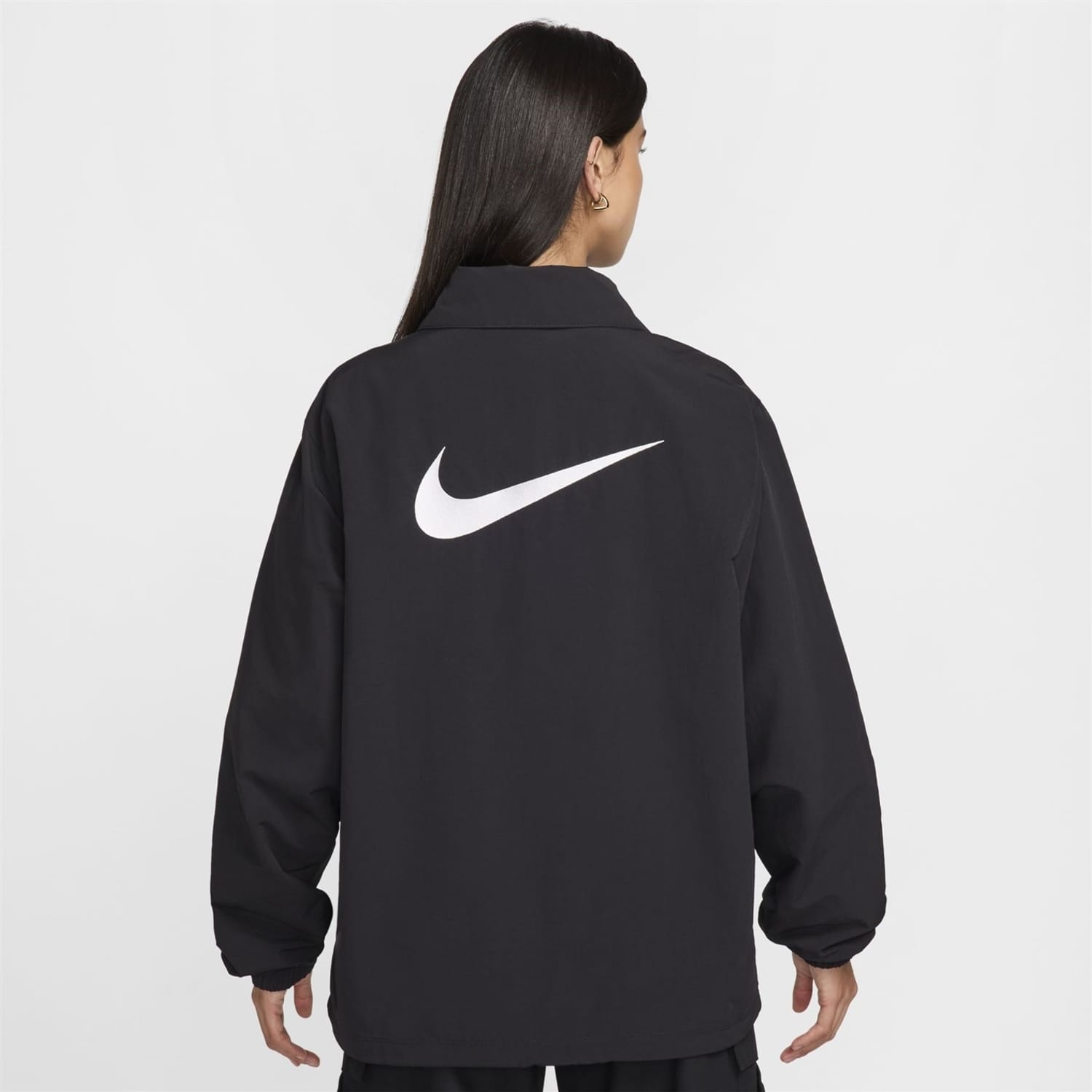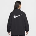 This Nike windbreaker features a relaxed fit with a shirt collar and a straight hem. The solid pattern is complemented by a logo embellishment. It has a snap button closure for convenience. -