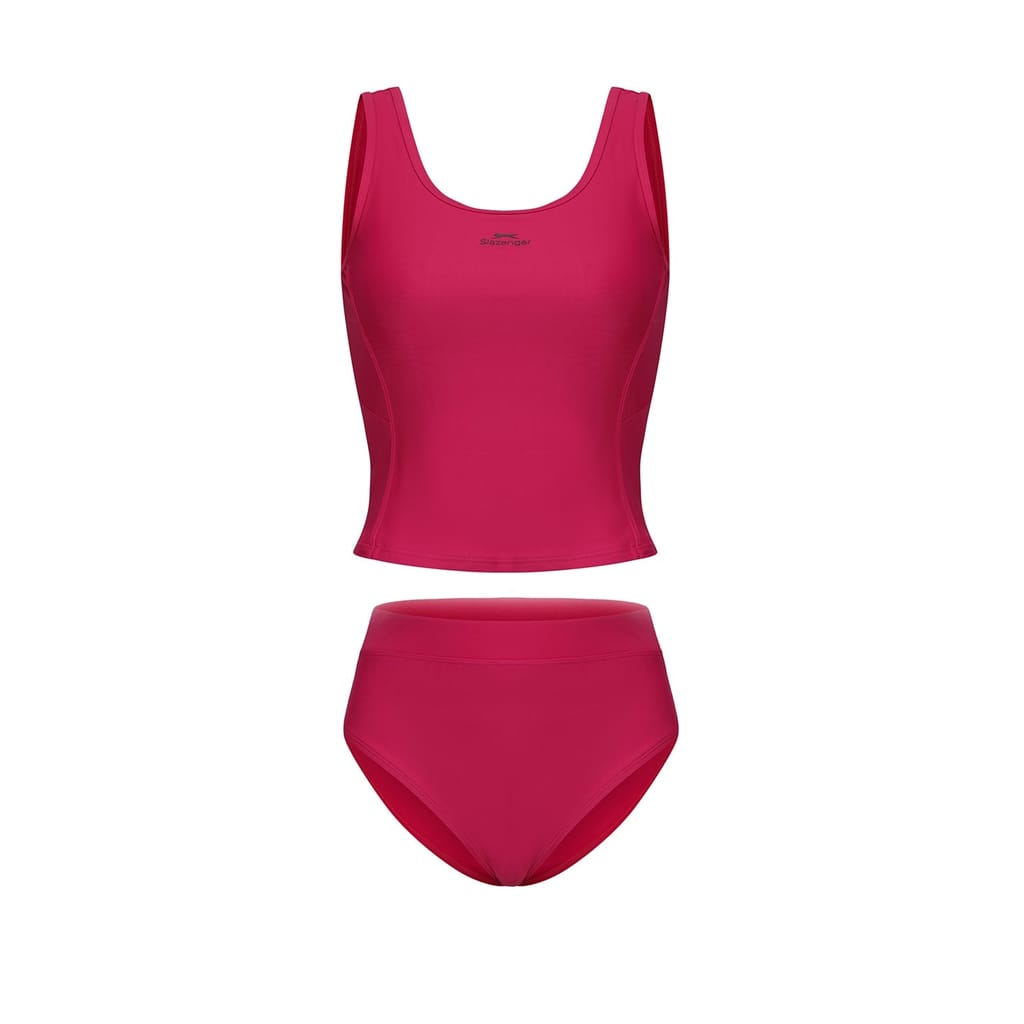 -- This two piece set comprises of short style bottoms and a full length vest - both of which consist of contrasting piping and the Slazenger logo.
