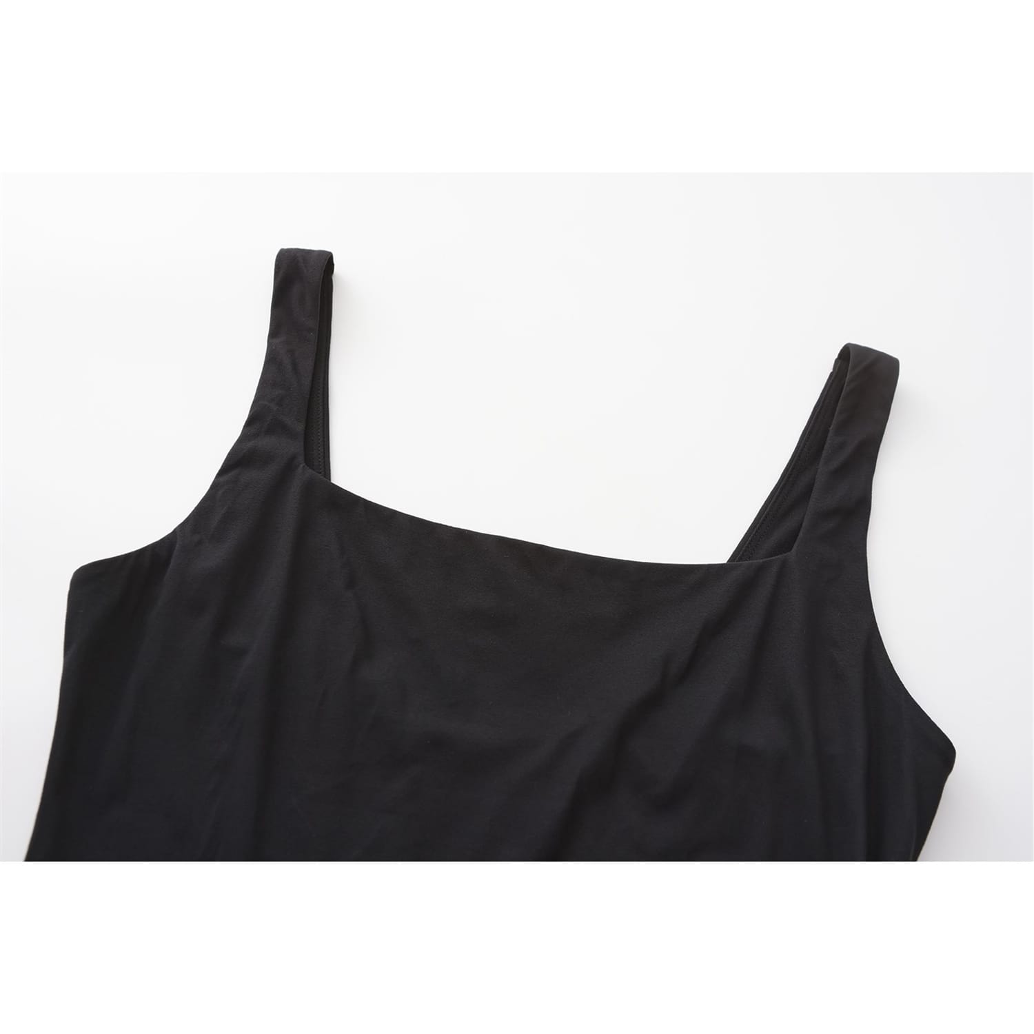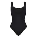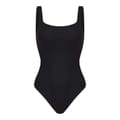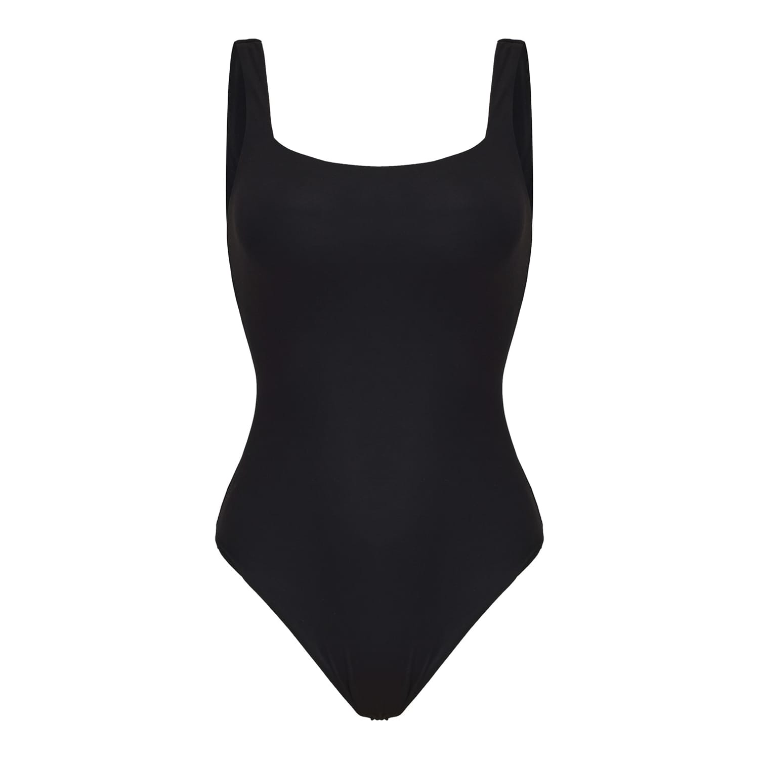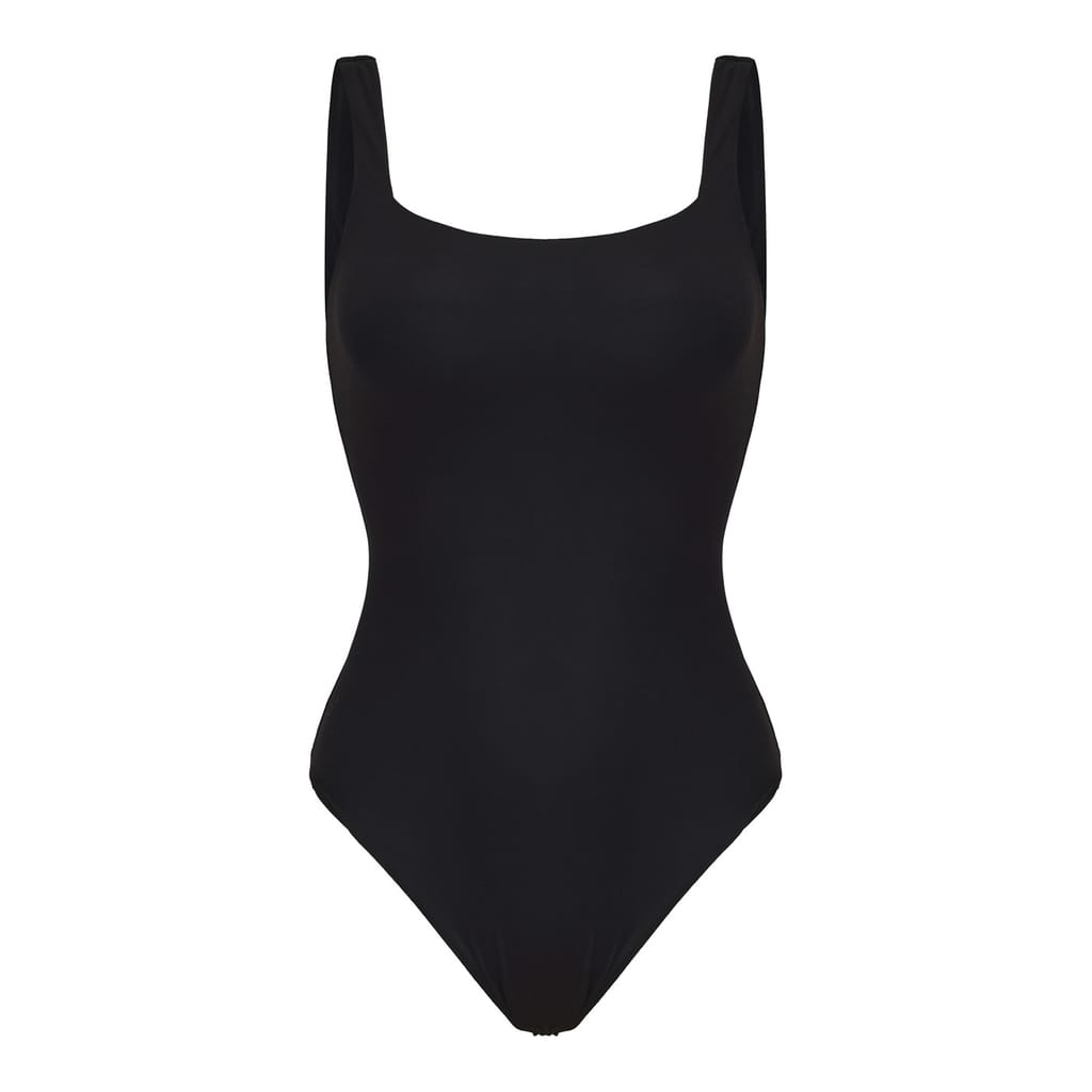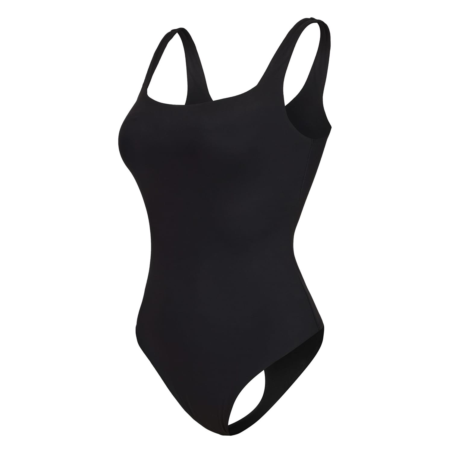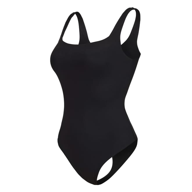 - Made to celebrate your curves.This black shape-enhancing swimsuit is crafted with firm support to flatten the tummy and create a beautiful silhouette.