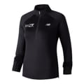 This New Balance top is designed for performance with a slim fit and raglan sleeves, making it ideal for sporting activities. Featuring a zip neck and a zipper closure, it offers convenience and style. The solid pattern and large genie graphic add a unique touch, while the logo embellishment highlights the brand. Suitable for all seasons, this top combines functionality with a modern aesthetic. -