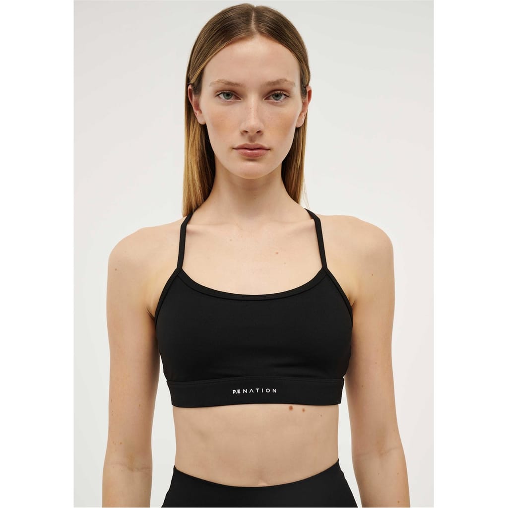 This PE Nation top is a perfect addition to your activewear collection. Designed with a snug fit, it features a sleeveless style with spaghetti straps and a cropped length. The solid pattern is complemented by a logo embellishment, making it ideal for medium-impact activities. -