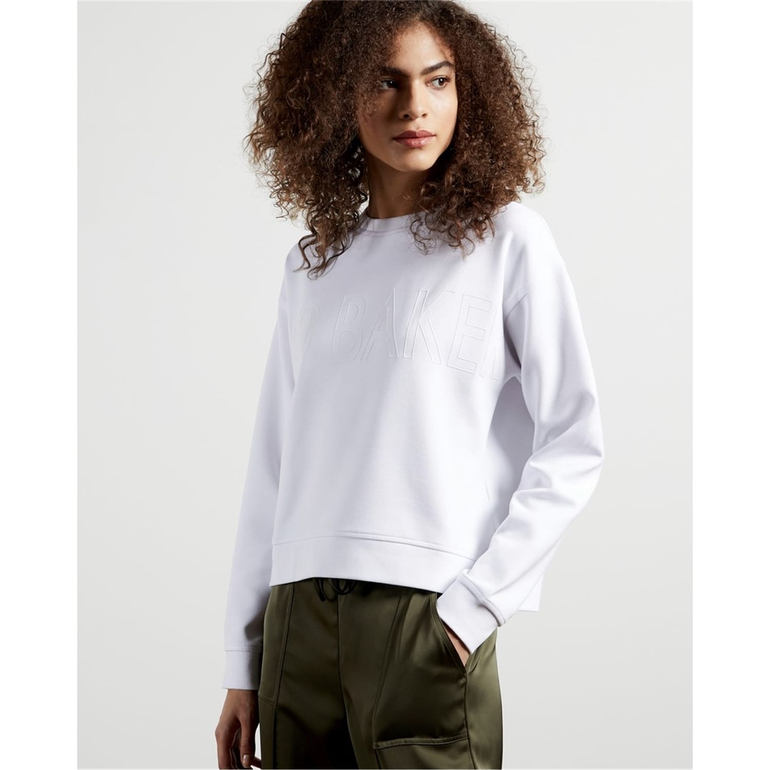 Embrace casual elegance with this Ted Baker sweatshirt. Featuring a crew neck and long sleeves, it offers a relaxed fit for ultimate comfort. The solid pattern is accentuated by ribbed cuffs and a stylish logo lettering, making it a versatile addition to your wardrobe. -