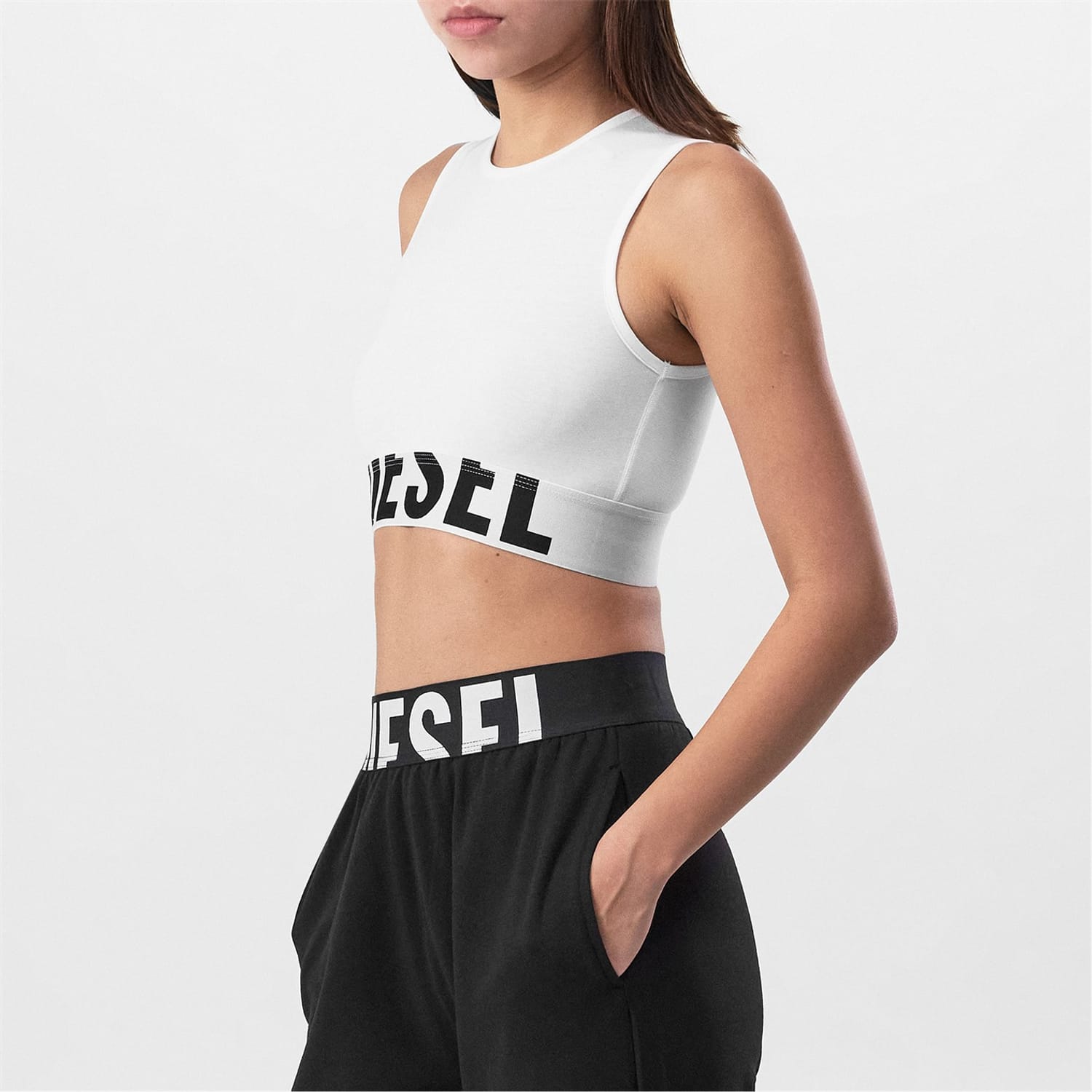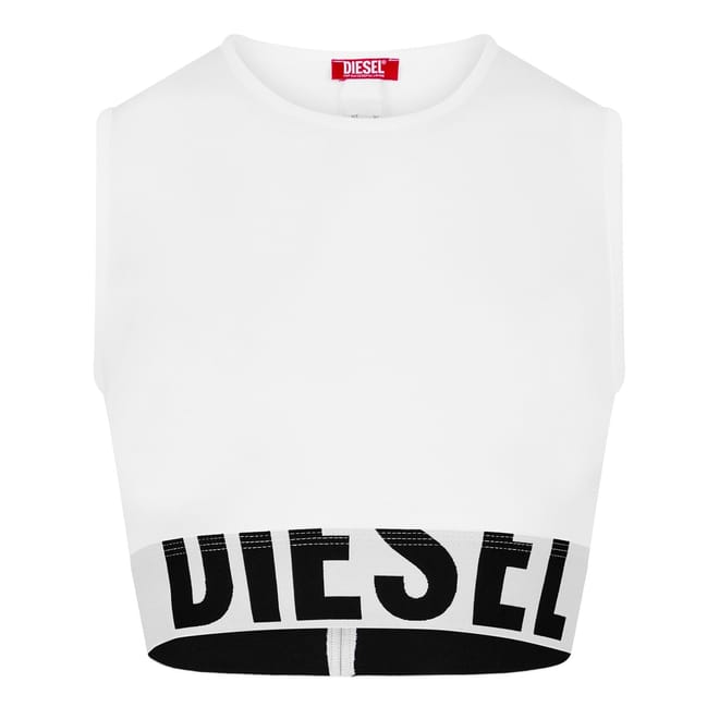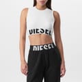 Discover Diesel's cropped pop top, a casual staple with a solid pattern. This sleeveless design features a crew neck and a slim fit, offering a modern silhouette. The top is embellished with a logo, adding a distinctive touch to your wardrobe. -