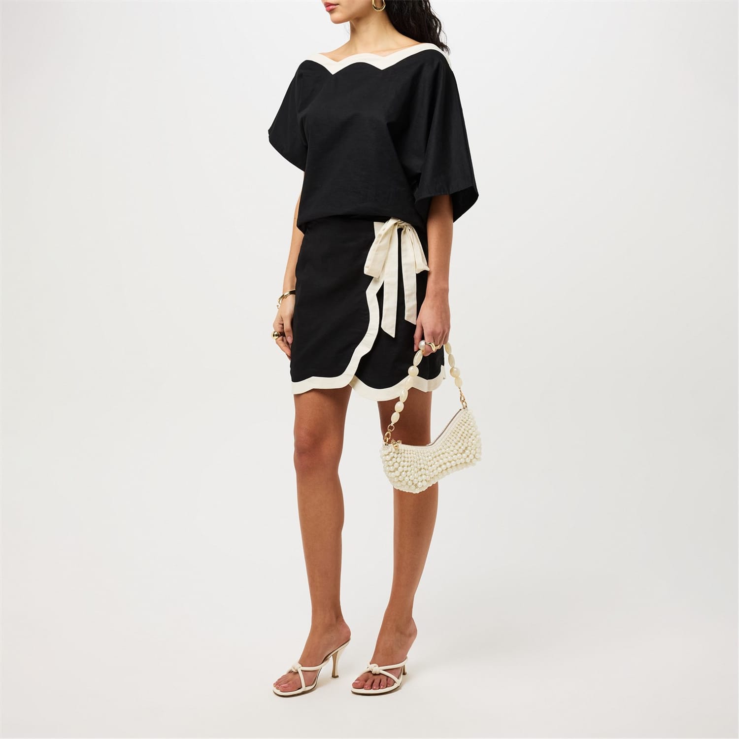 Embrace sophistication with the Scallop Mini Jaspre Skirt by Never Fully Dressed, a brand renowned for celebrating and empowering everybody through fashion. Adorned in a classic colourway exuding a timeless and elegant touch. From upscale dinner parties to cocktails with the girls, this mini skirt radiates luxury.
