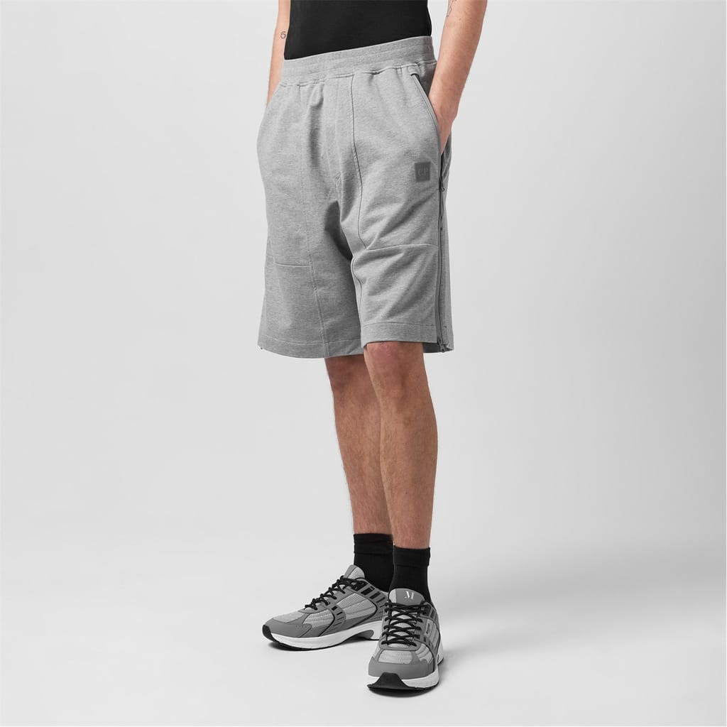These C.P. Company sweat shorts feature a solid pattern and are designed with a zipper and drawstring closure for a secure fit. The shorts are embellished with a logo and include practical side pockets, making them a versatile addition to your casual wardrobe. -