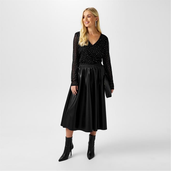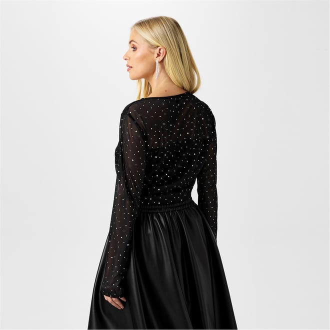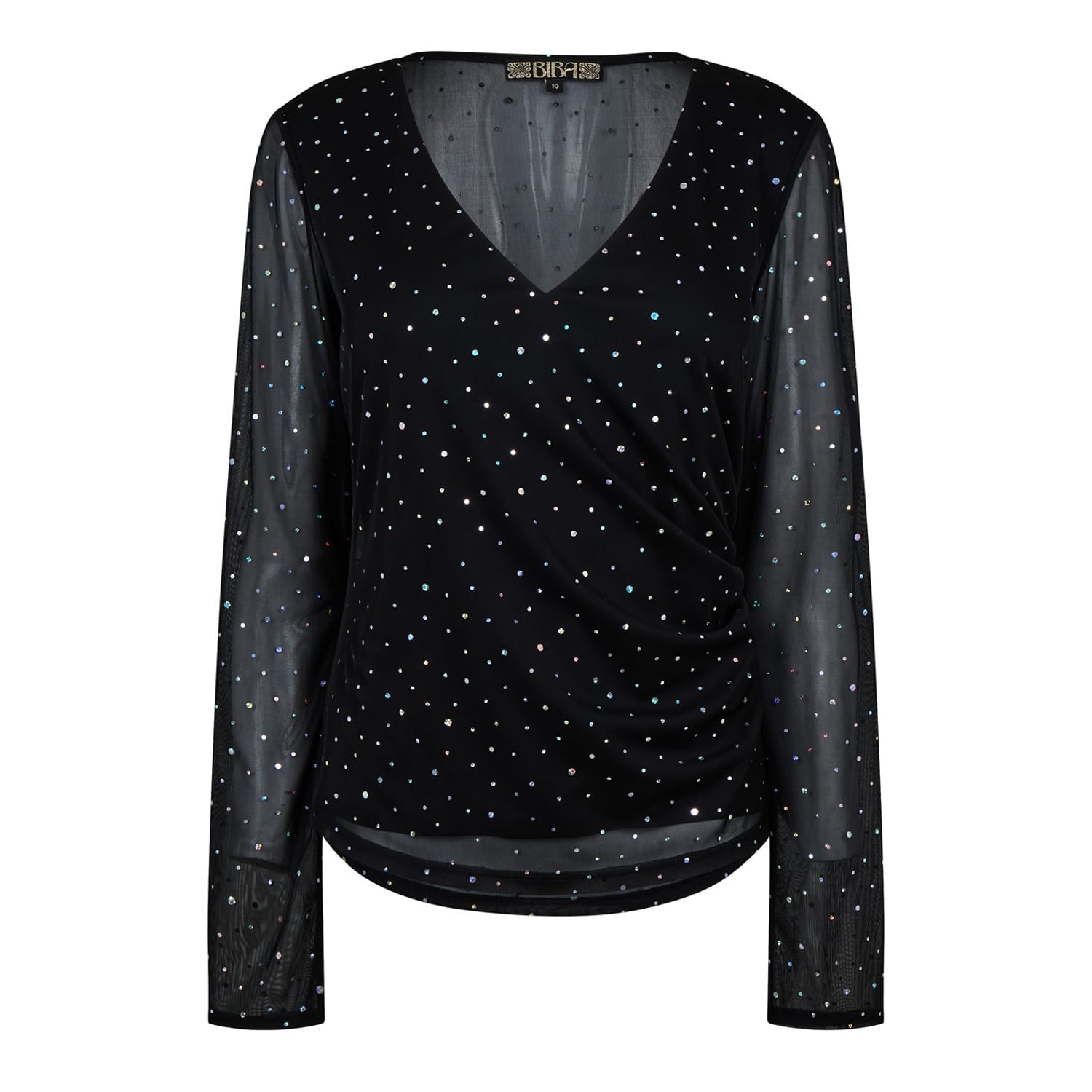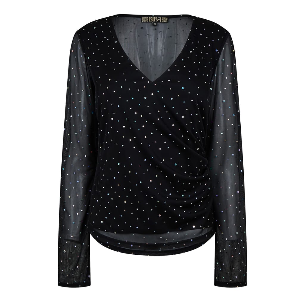 - Pair the Sequin Mesh Top with Biba PU wide-leg trousers and heels for a stunning, head-turning look. Add bold earrings and a clutch for an extra touch of sophistication. For a more laid-back yet stylish outfit, wear the top with Biba Stevie Jeans and ankle boots. This combination is perfect for a day out or a casual dinner. -