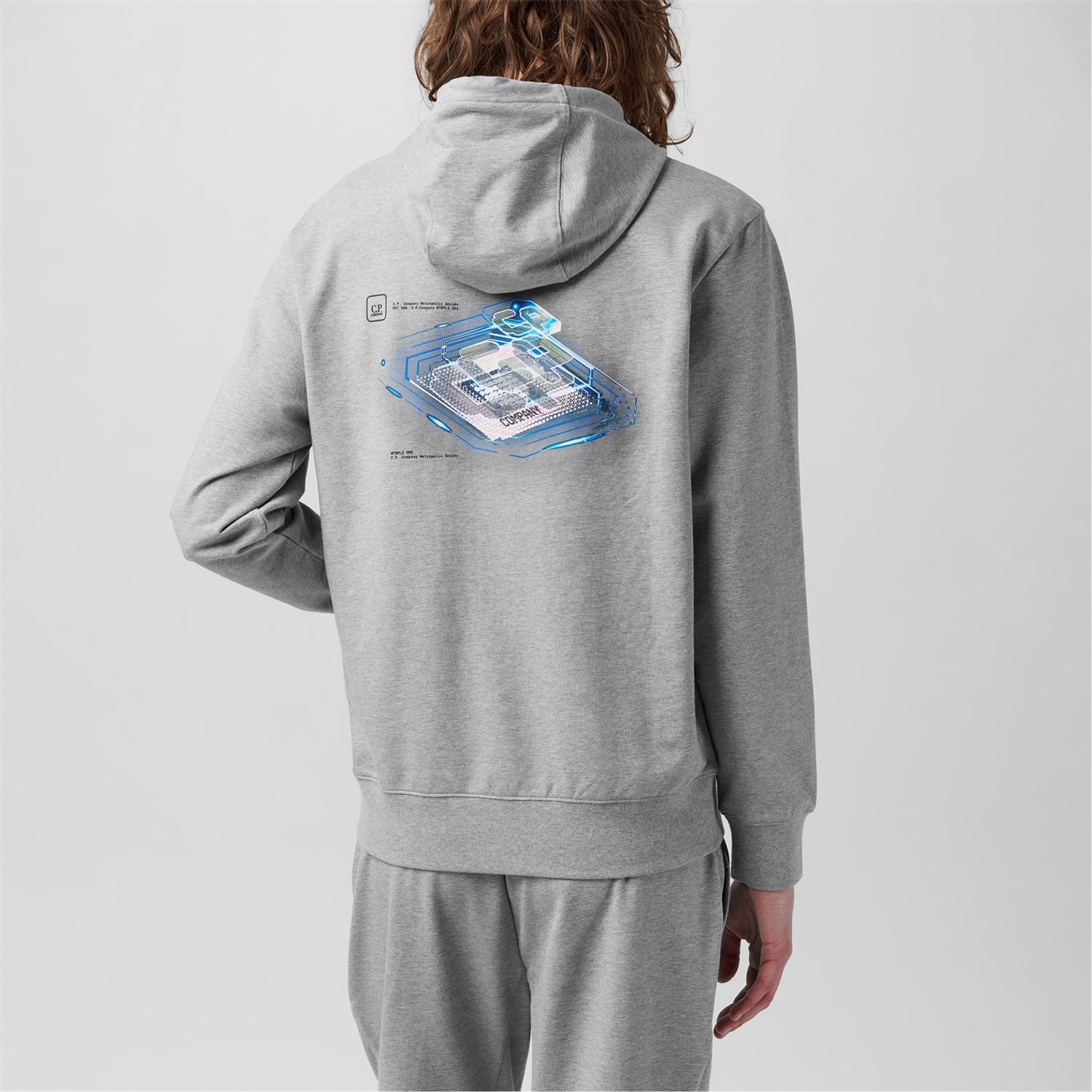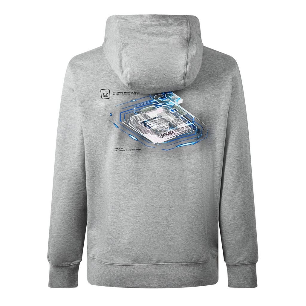 This C.P. Company top features a hooded neck and long sleeves with ribbed cuffs. It showcases a regular fit and is adorned with a geographic print and logo embellishment. The top includes a practical pocket and a zipper closure, making it a versatile addition to any casual collection. -