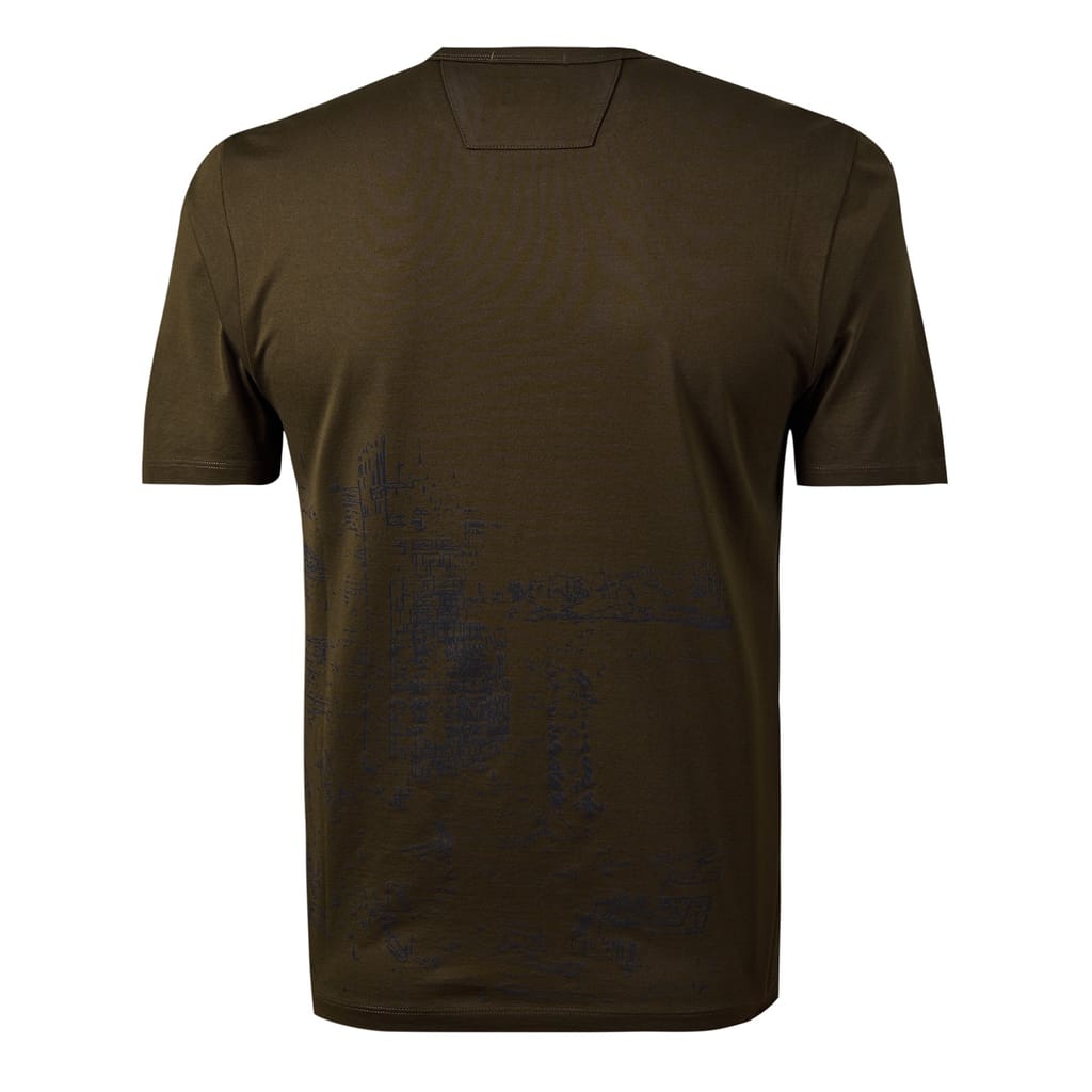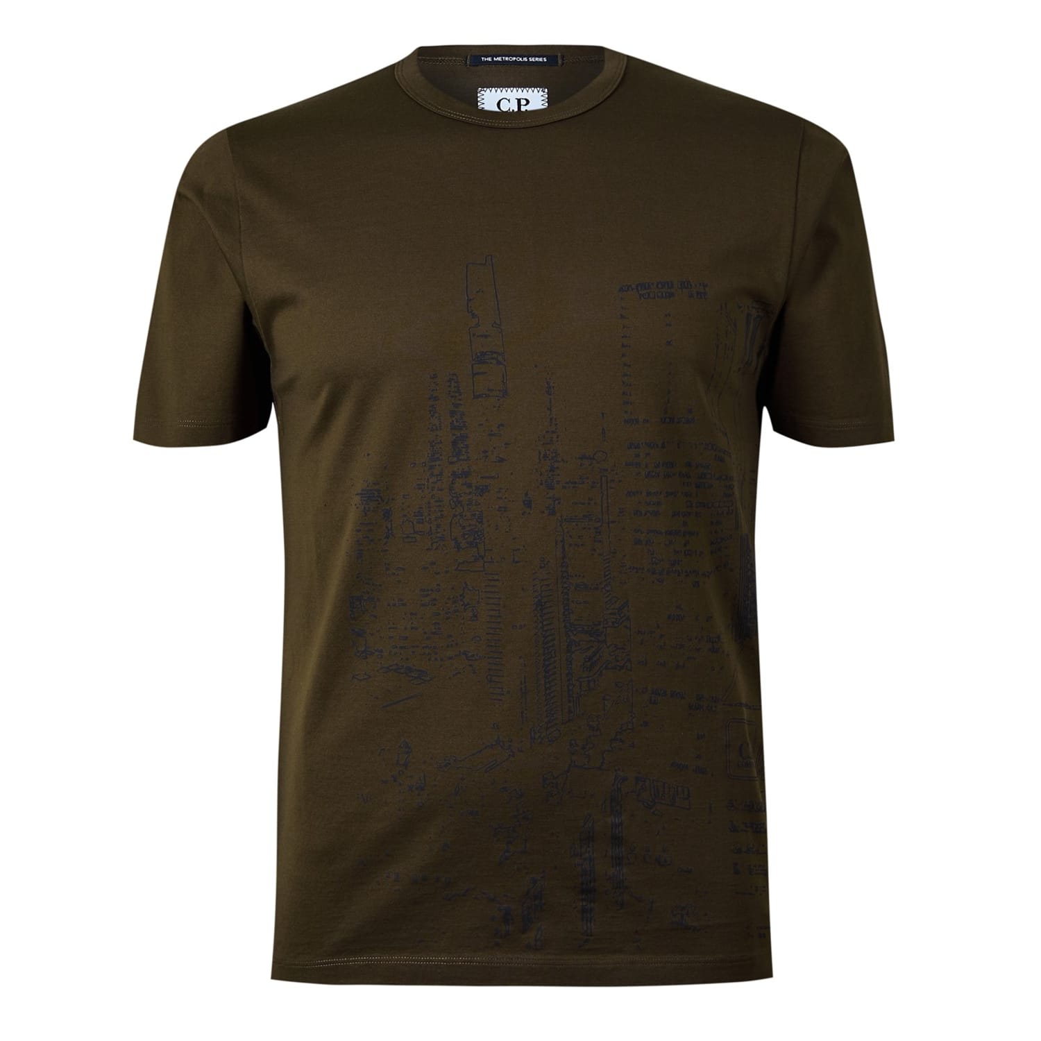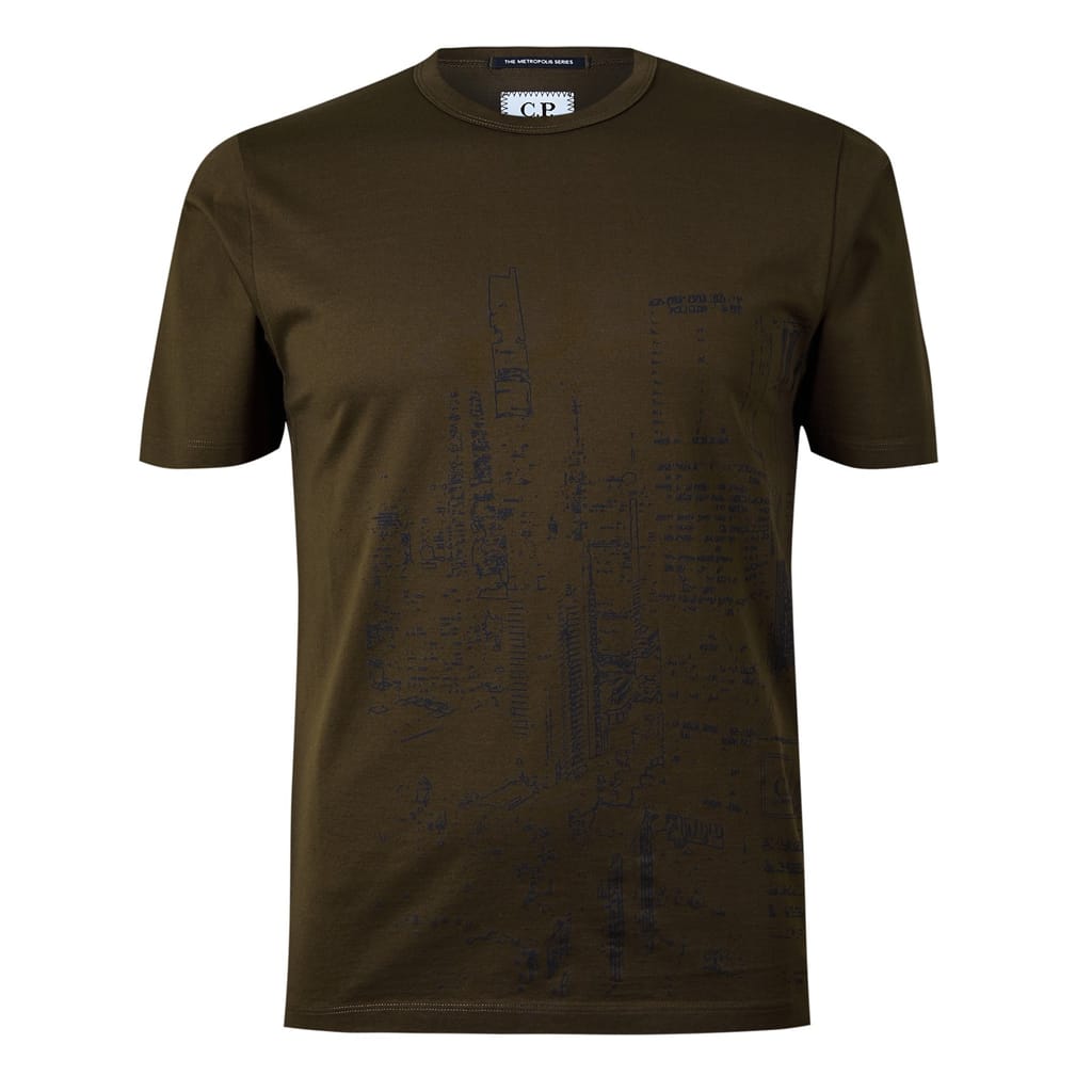 This C.P. Company top features a regular fit with a crew neck and short sleeves. The design is enhanced by a striking geographic graphic print, complemented by a subtle logo embellishment. -