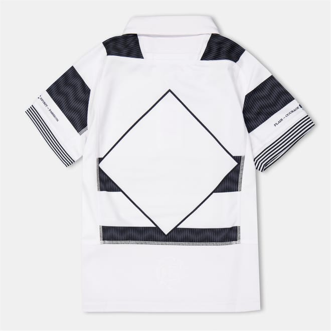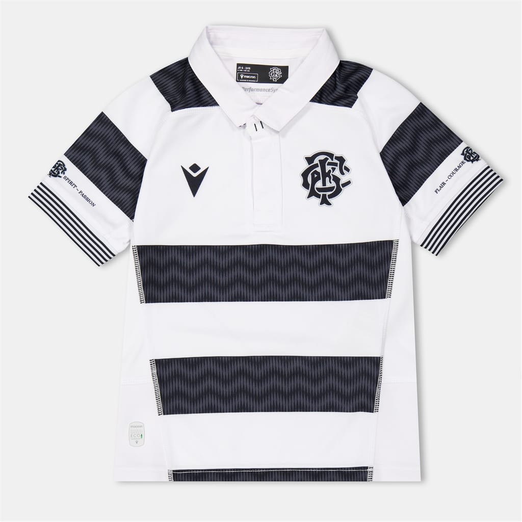 This Macron top from the replica collection features a classic polo collar and a button closure. The short raglan sleeves and ribbed cuffs offer a comfortable regular fit. Adorned with a logo, the horizontal stripe pattern adds a stylish touch to this piece. -
