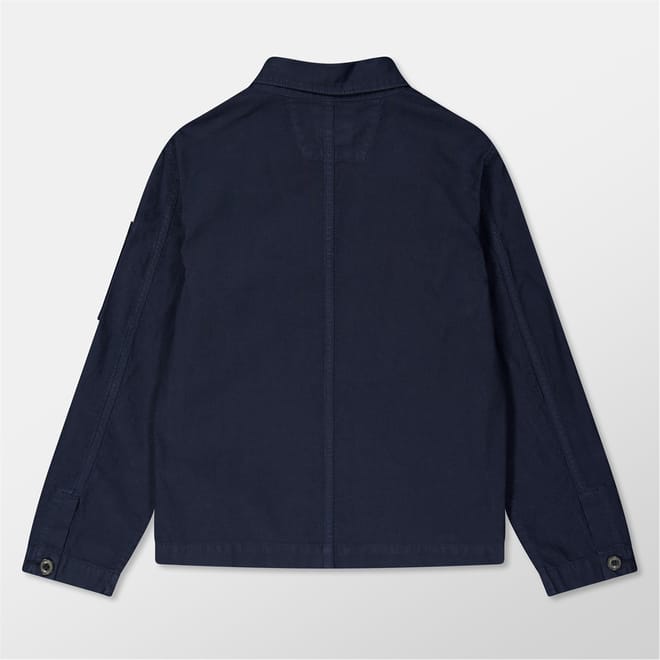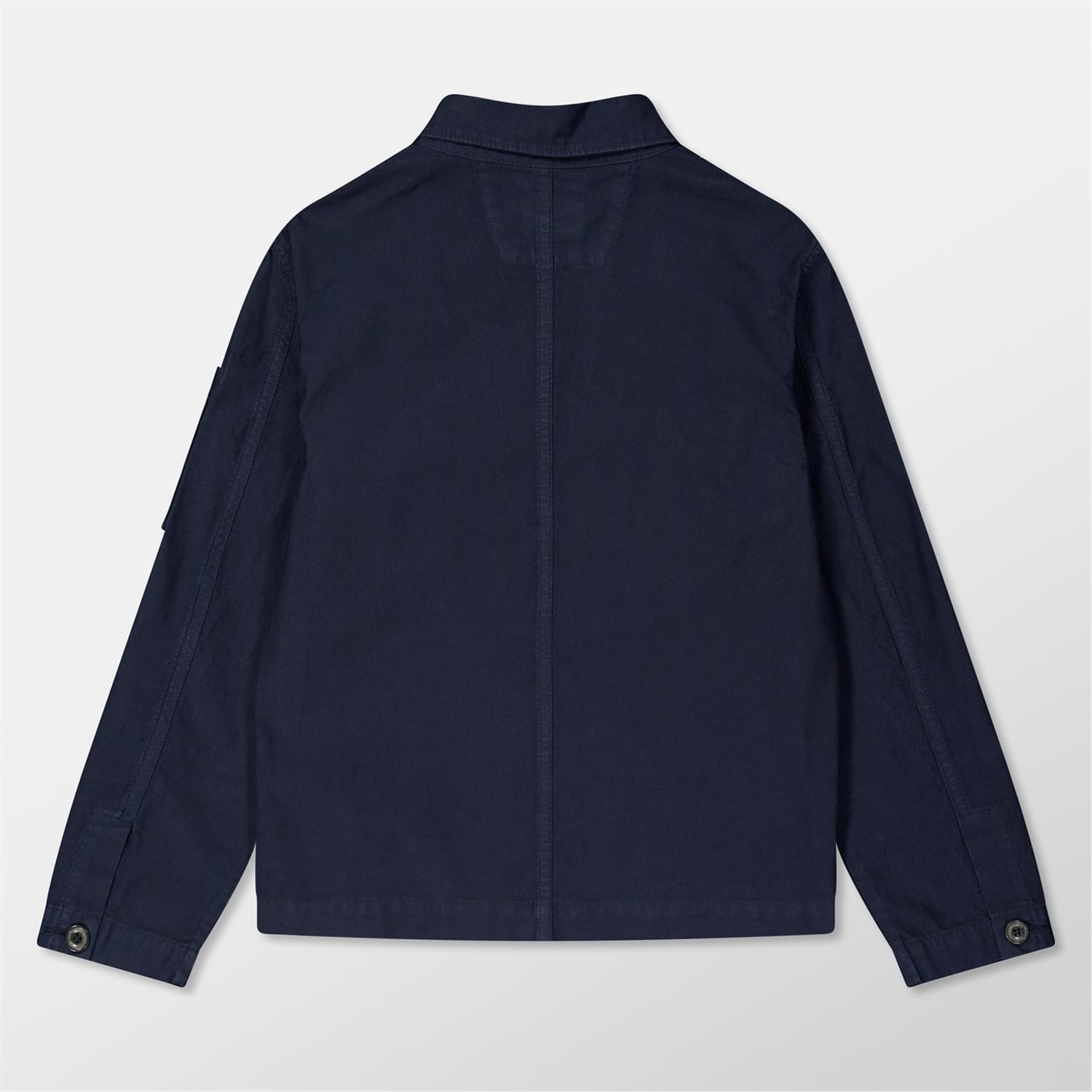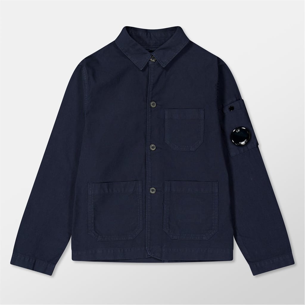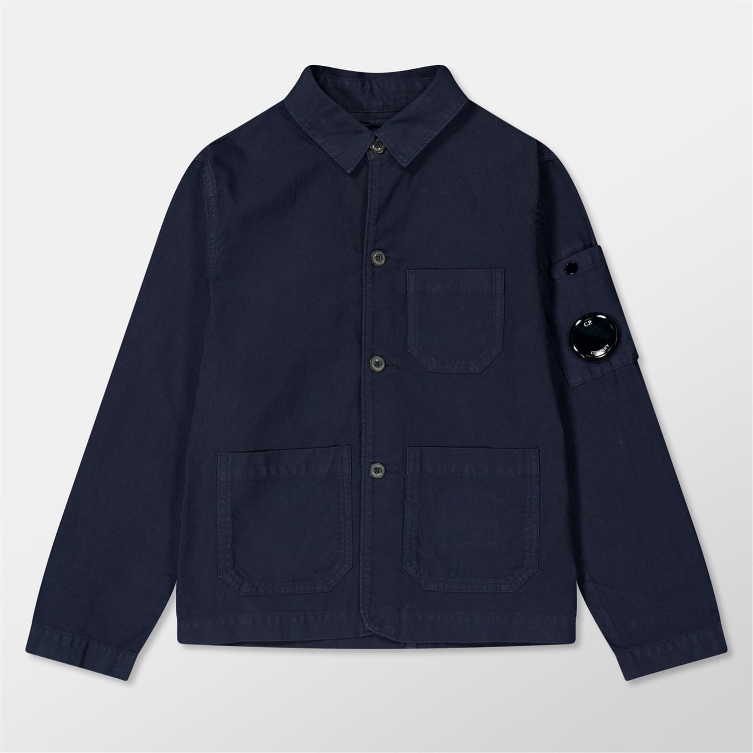 This C.P. Company overshirt is designed for juniors, featuring a solid pattern and a regular fit. It has a shirt collar and a straight hem, offering a classic look. The jacket includes button closure and is embellished with practical pockets, including patch and chest pockets, along with a logo detail. Its short length makes it a versatile addition to any wardrobe. -