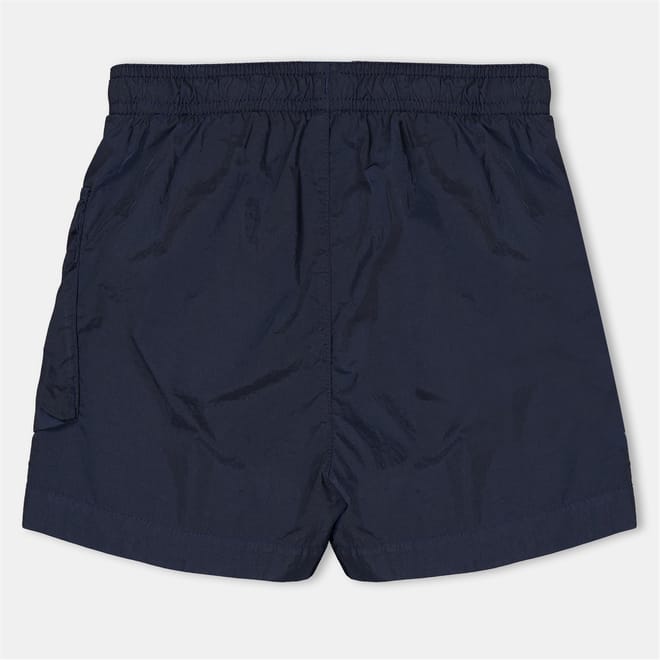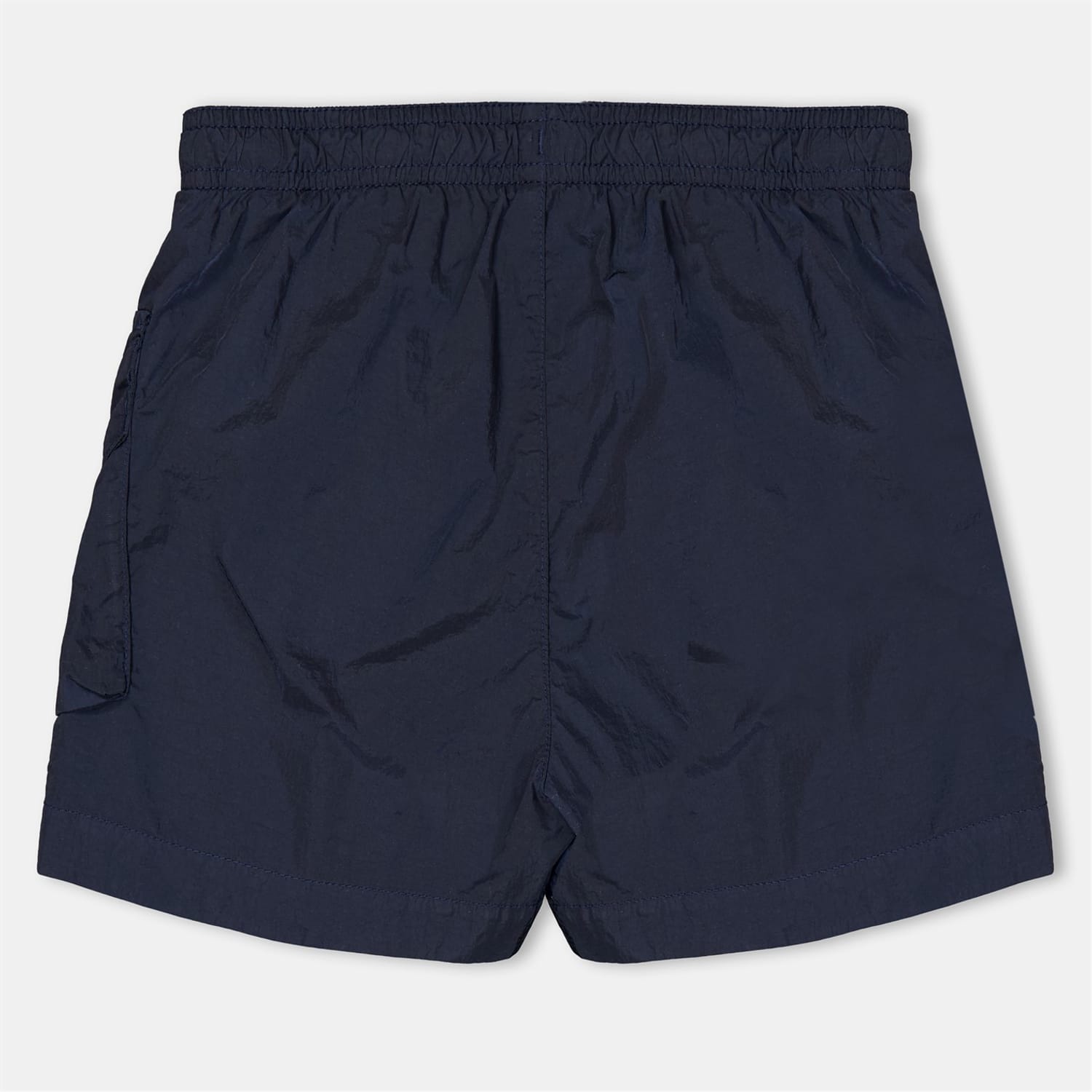 C.P. Company swimwear for juniors offers a stylish swim bottom designed for swimming activities. Featuring a drawstring and elasticated waistband for a secure fit, it includes practical pockets and a distinctive lens detail. The iconic logo adds a touch of brand recognition, making it a functional and fashionable choice for young swimmers. -
