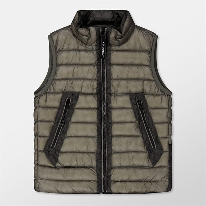 This junior gilet from C.P. Company features a solid pattern with a regular fit. It is designed with a straight hem and a convenient zipper closure. The gilet is embellished with a logo and pockets, offering both style and functionality. -