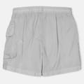C.P. Company swimwear for juniors features a swim bottom design, perfect for swimming activities. It includes an elasticated waistband for a comfortable fit. The swim bottom is adorned with a logo, pocket, and lens detail, adding a distinctive touch to the overall look. -