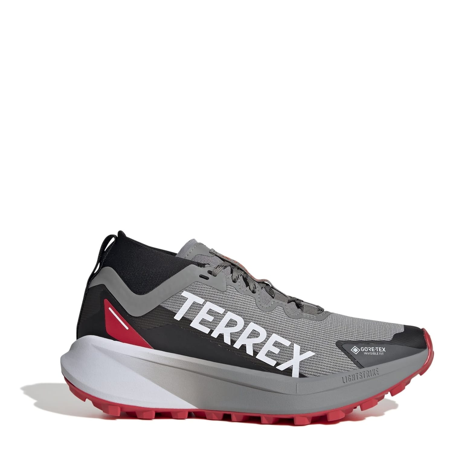 Responsive and supportive, these adidas Terrex Agravic GTX Trail Running Shoes are built for logging miles and adventurous days on the trail in wet, muddy conditions. A waterproof, breathable GORE-TEX membrane seals out wet conditions to keep your feet dry, and you focused on the trail ahead. Abrasion-resistant overlays add trail-proven durability, and the gusseted tongue seals out debris.