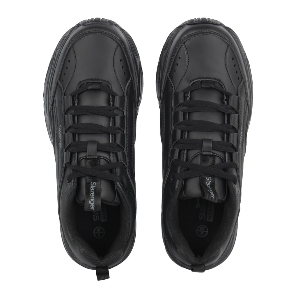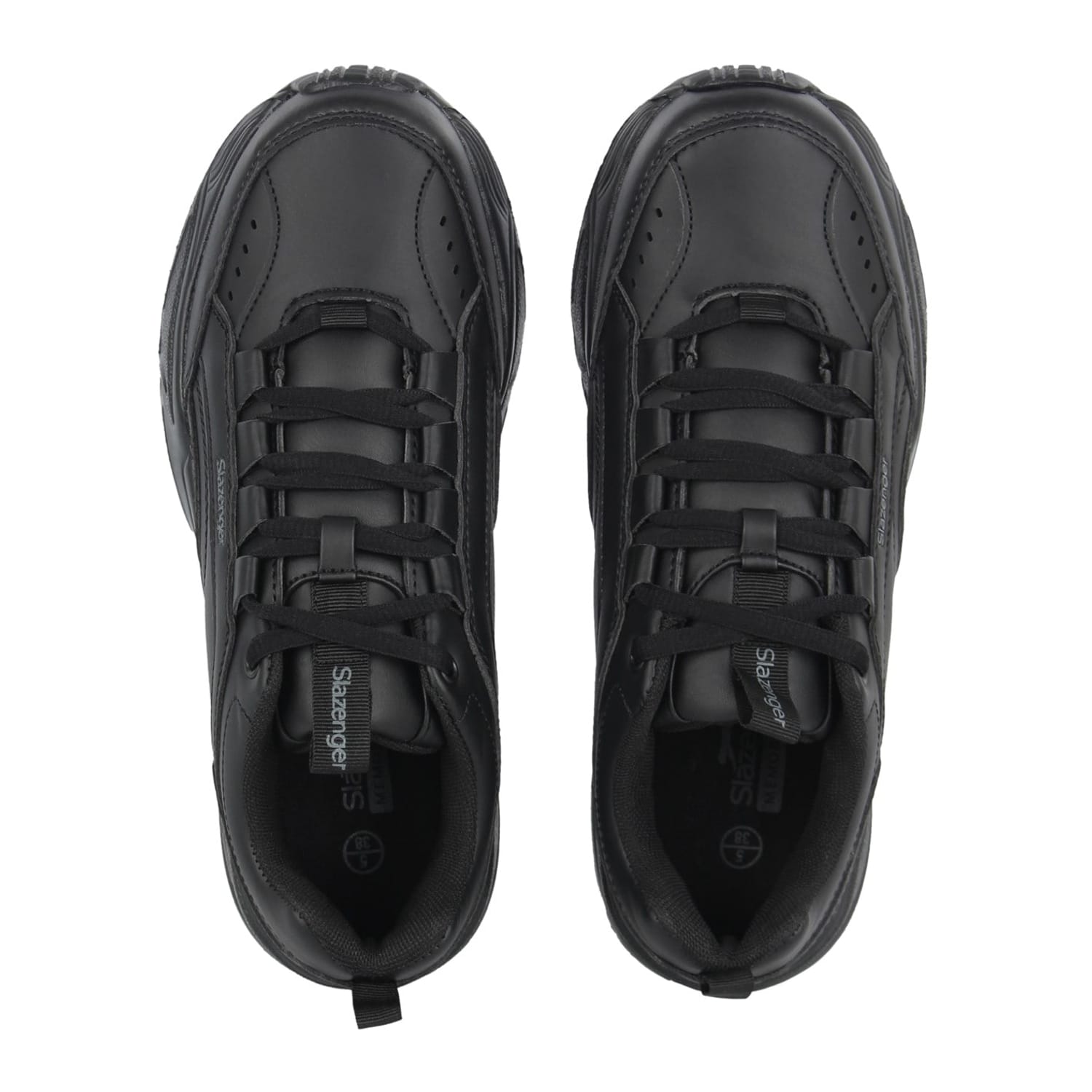The Slazenger Kuba Trainers Junior mixes fashion with that retro feel. Synthetic leather upper makes this trainer easy to clean and maintain. Pull on tab to the heel and tongue for easy on and off. Sat on a platform outsole to complete the look. -