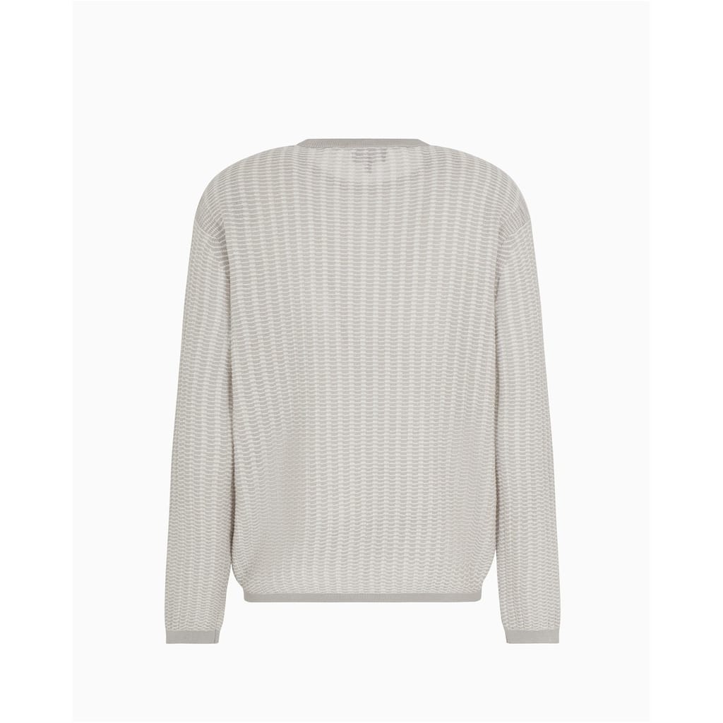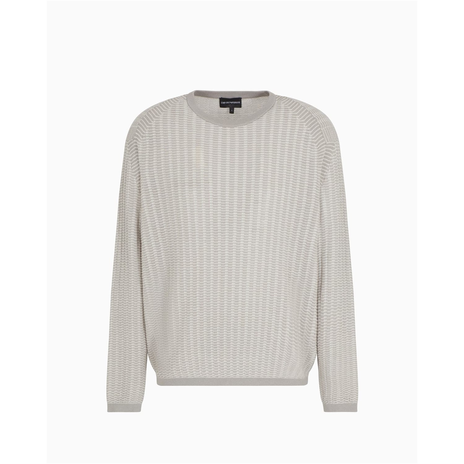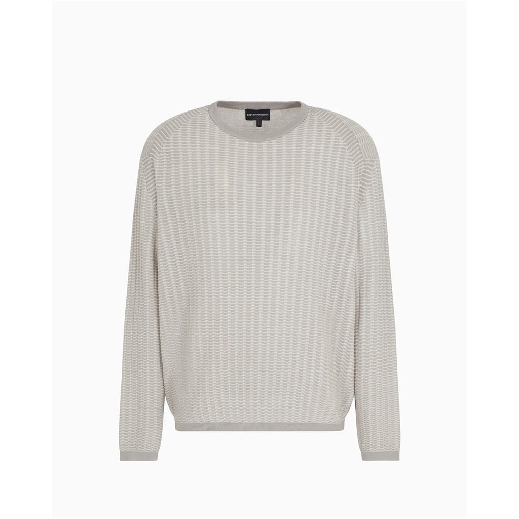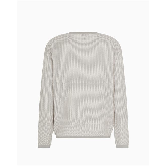 This Emporio Armani top features a relaxed fit with long sleeves and a crew neck. The textured design is complemented by a ribbed cuff, adding a touch of sophistication. A subtle logo embellishment completes the look, making it a versatile addition to any wardrobe. -