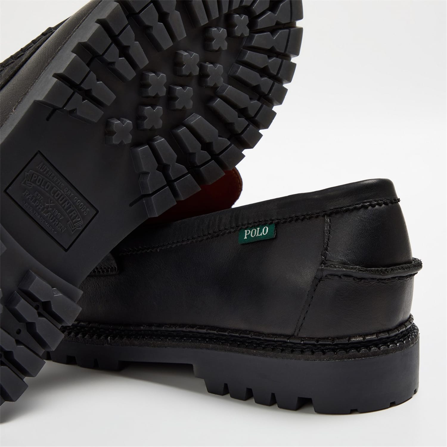 Discover the timeless elegance of Polo Ralph Lauren penny loafers. These shoes feature a classic round toe design, perfect for those who appreciate understated style. Crafted with attention to detail, they embody the brand's commitment to quality and sophistication. Ideal for any occasion, these loafers offer both comfort and a refined aesthetic. -