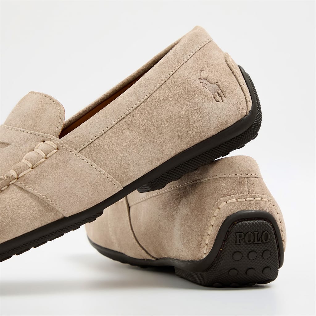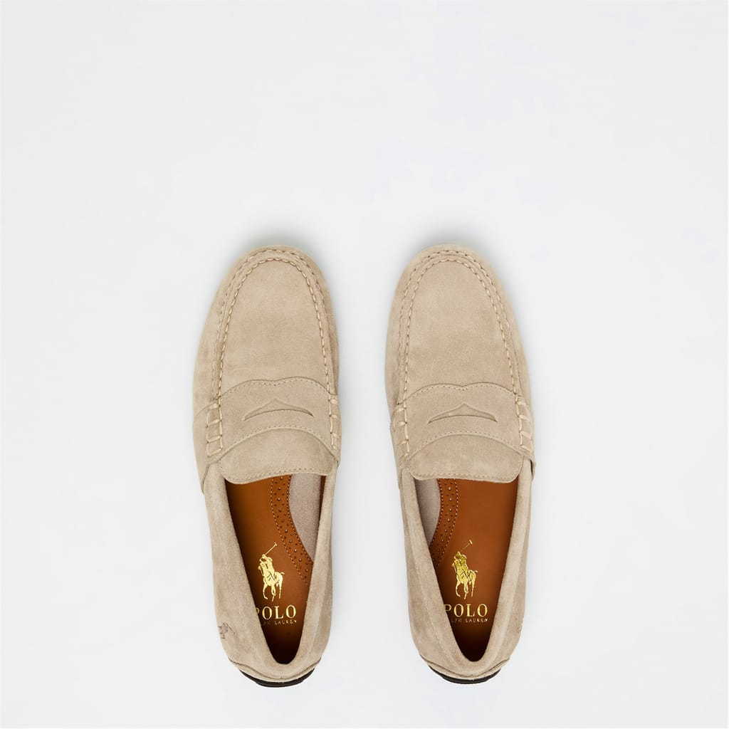 Discover the timeless elegance of Polo Ralph Lauren penny loafers. These moccasin-style shoes feature a classic round toe, offering a sophisticated touch to any ensemble. Crafted with attention to detail, they embody the perfect blend of style and comfort, making them an essential addition to your footwear collection. -