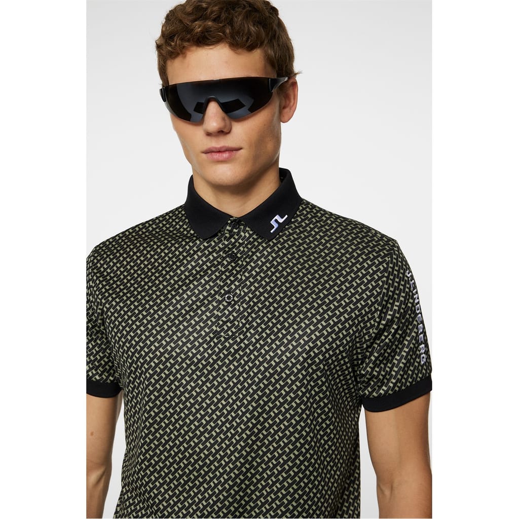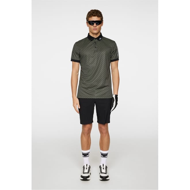 J Lindeberg Golf's Short-Sleeve Performance Polo Shirt pairs technical fabrics with style on the course. This golf apparel features moisture-wicking properties and a tailored fit for unrestricted movement during your swing.