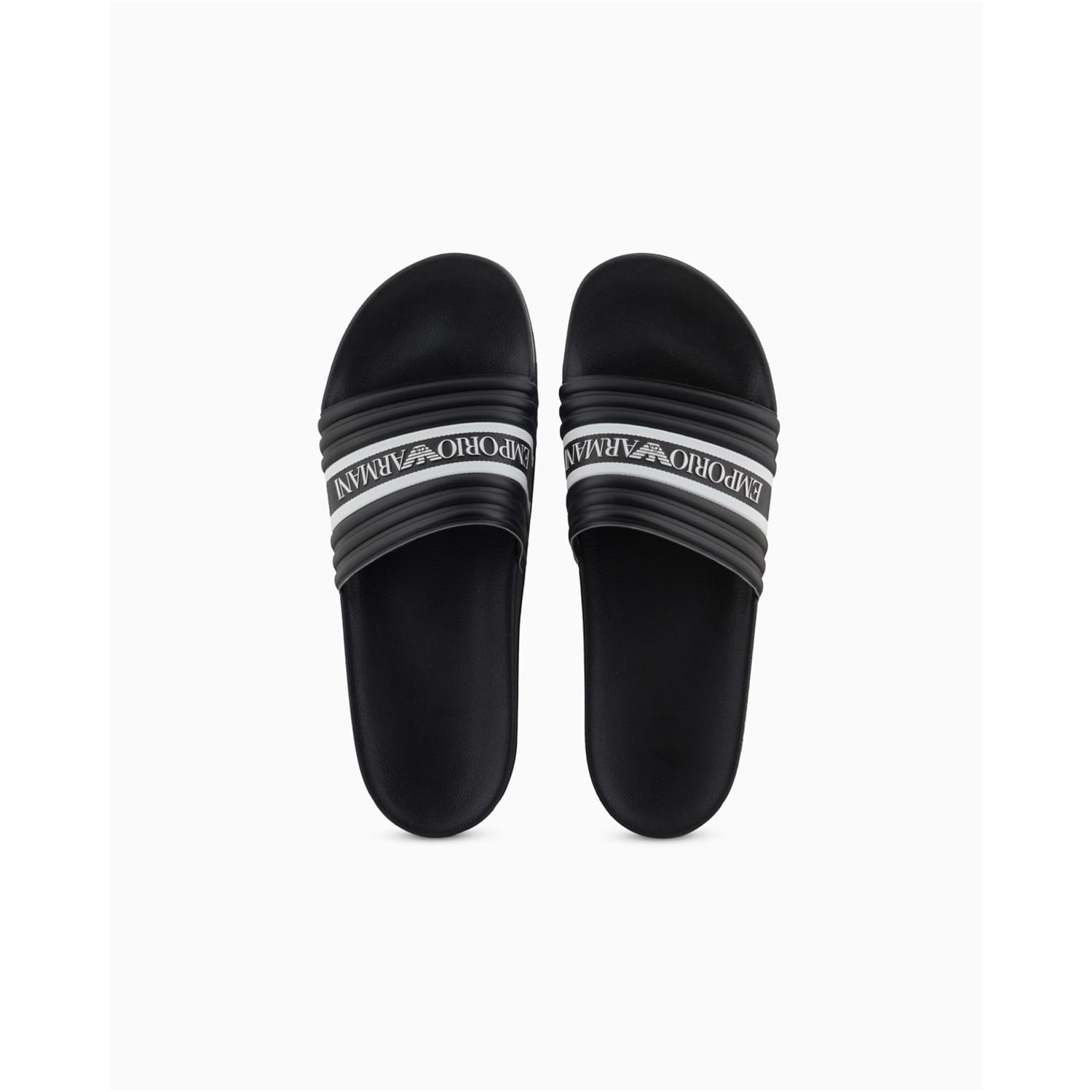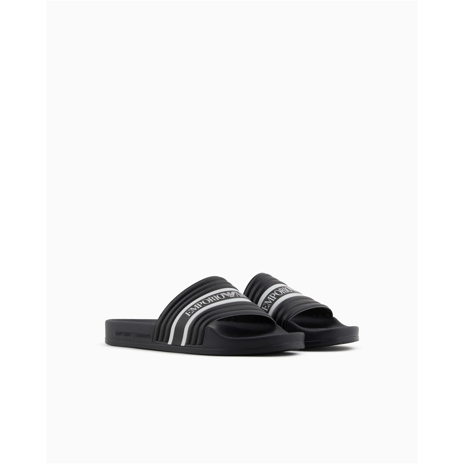 Step into style with these Emporio Armani slides, a perfect addition to your footwear collection. These open-toe sandals feature a distinctive logo print, offering a blend of comfort and brand appeal. Ideal for casual outings, they embody the essence of modern fashion with a touch of luxury. -