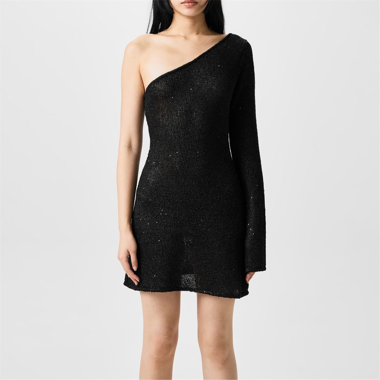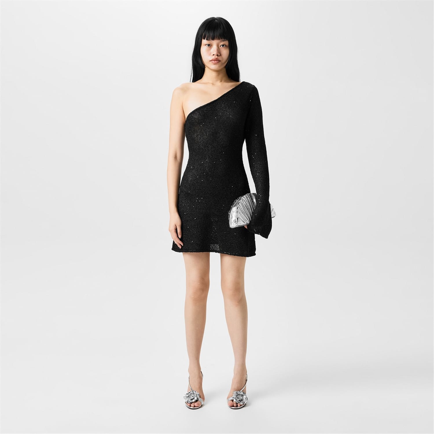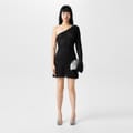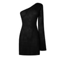 - A classic one shoulder, one long sleeve silhouette that creates a timeless design that transcends seasons.