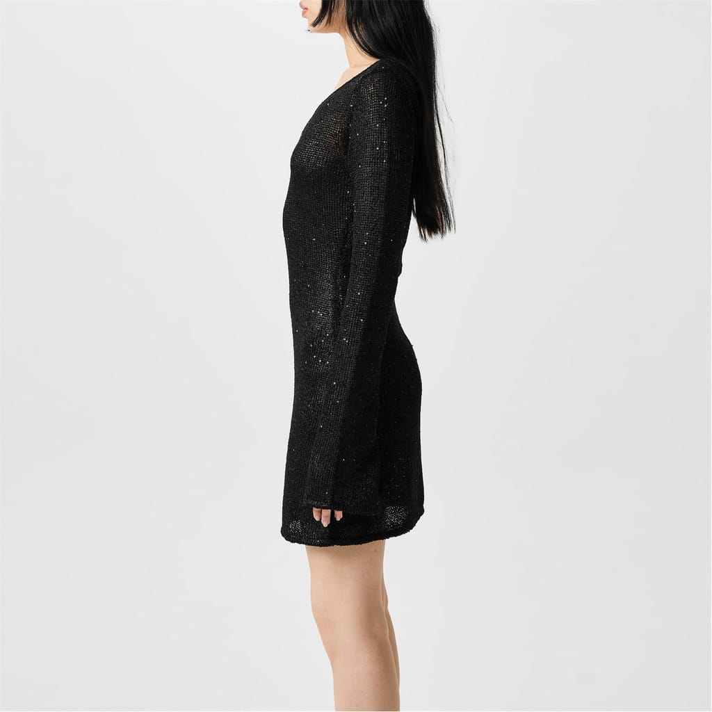 - Microsequins woven throughout the fabric create a sparkling silhouette that commands attention from every angle.