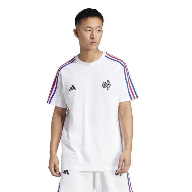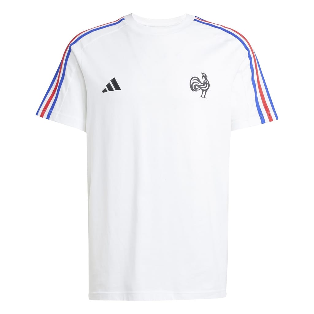 Pull on this adidas France tee to rep your national team in casual style. Soft, breathable single jersey fabric keeps you comfortable whether you're cheering from the stands or hanging out with friends. Tricolour flag-inspired 3-Stripes on the shoulders and a Gallic rooster badge on the chest confirm your rugby pride.