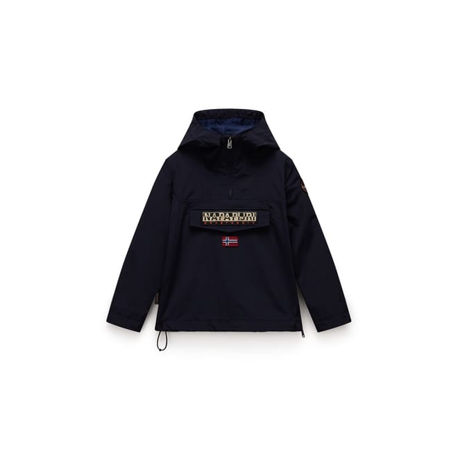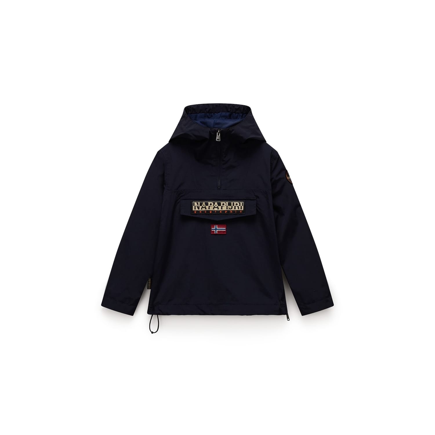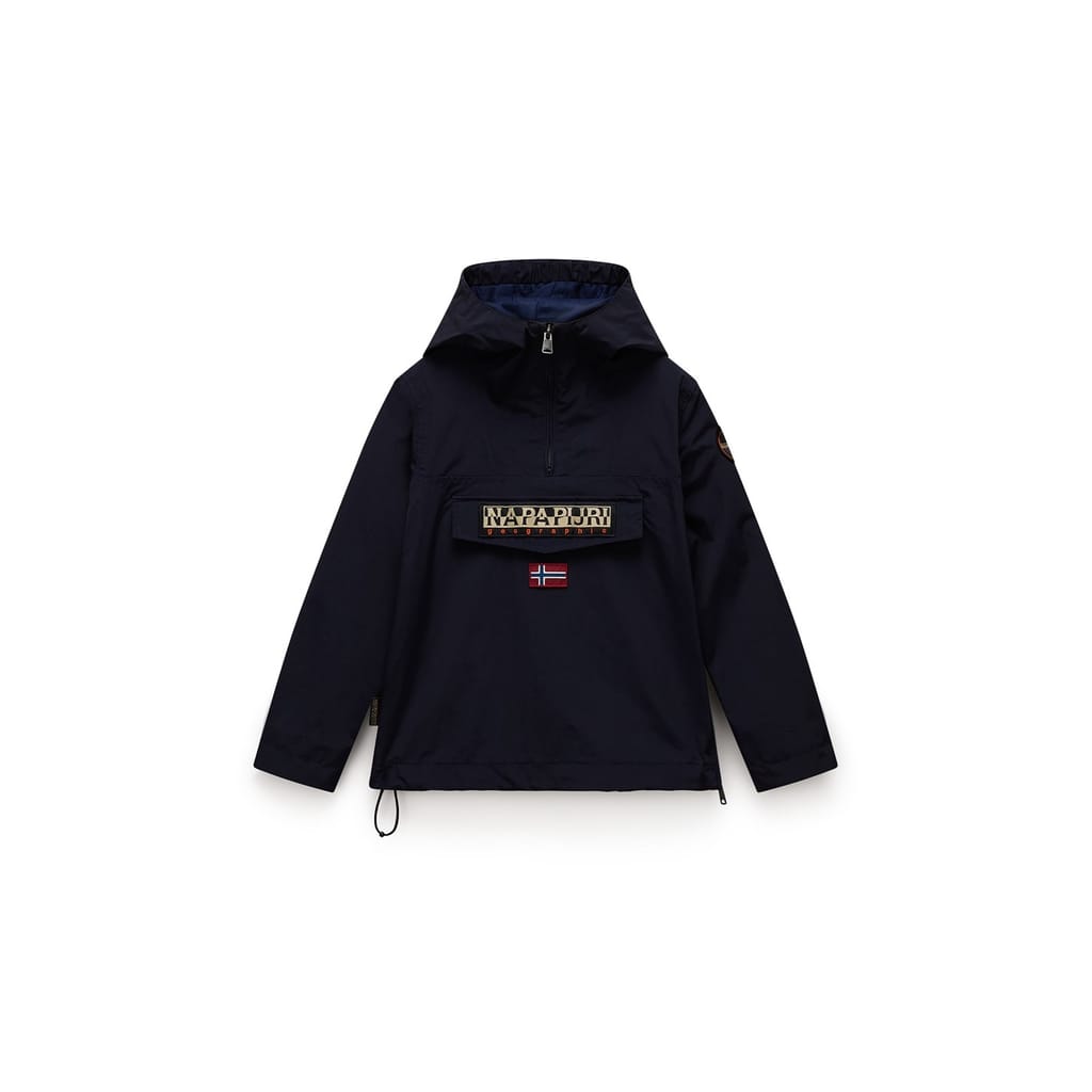 The Napapijri Rainforest jacket is a water-repellent essential, featuring a hooded neck and a relaxed fit. This short, solid-patterned jacket includes a straight hem and a convenient zipper closure. Embellished with a logo and flag logo, it also offers practical pockets for added functionality. -