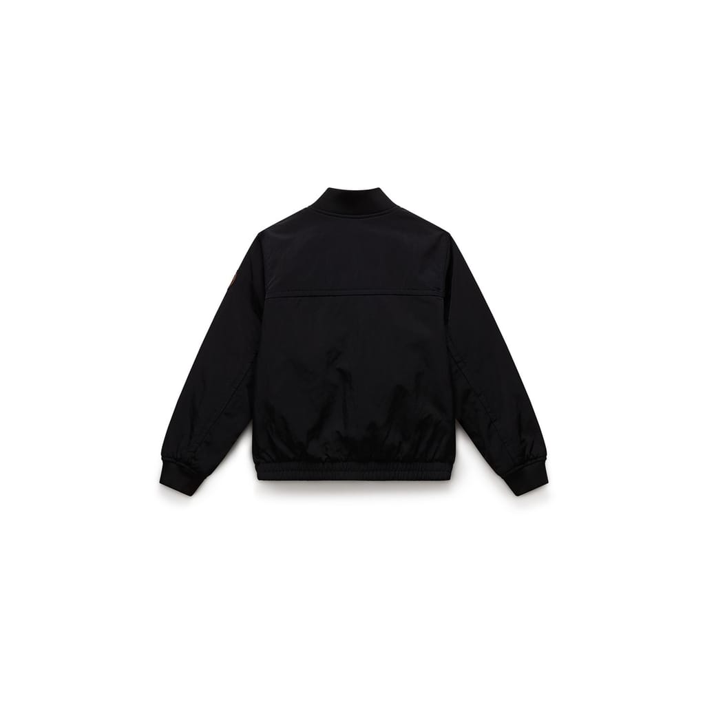The Napapijri parka coat is designed for winter, offering a regular fit with a solid pattern. It features a ribbed collar, ribbed hem, and ribbed cuffs for added comfort. The coat includes a full zipper closure and is adorned with a logo patch, making it a stylish choice for both sport and casual collections. -