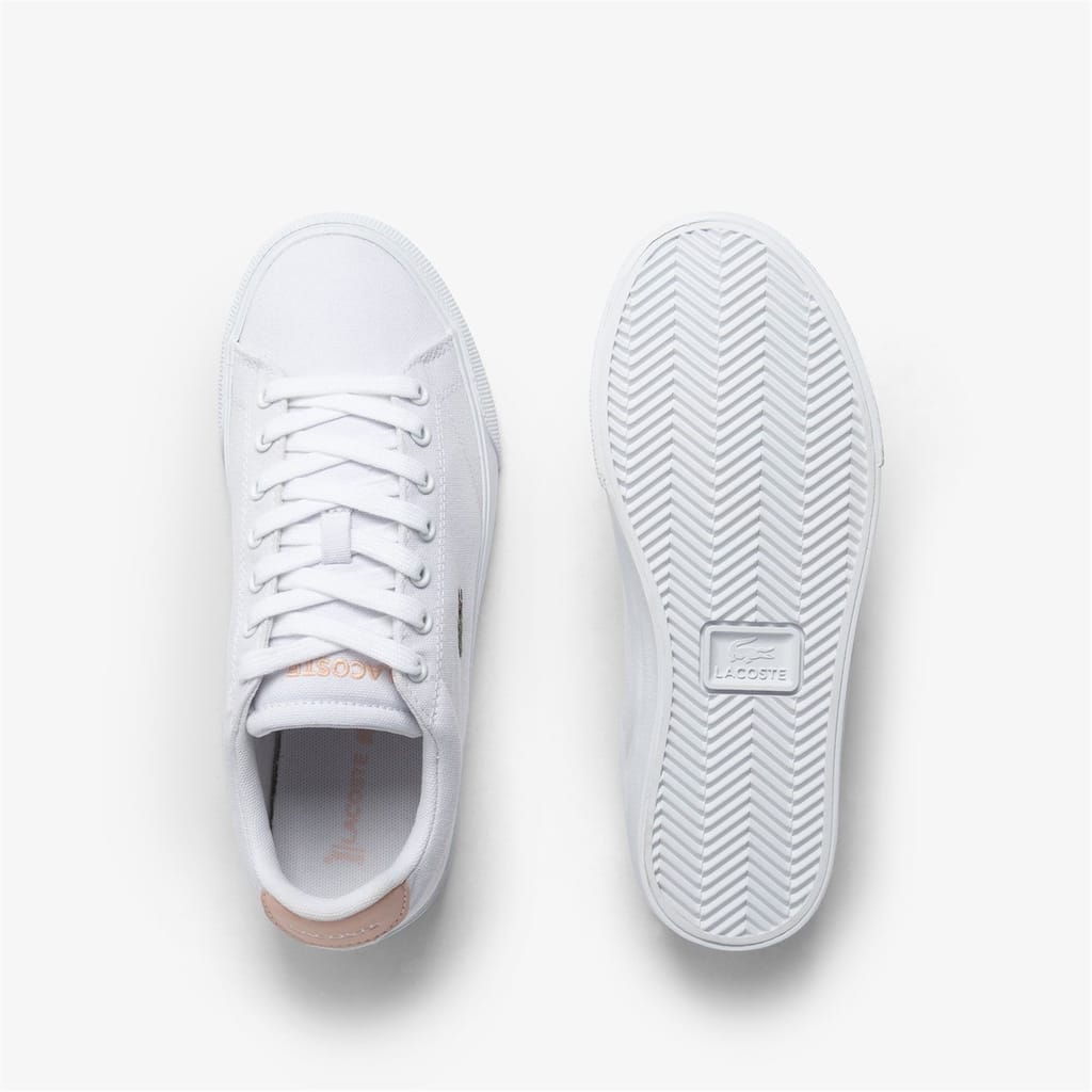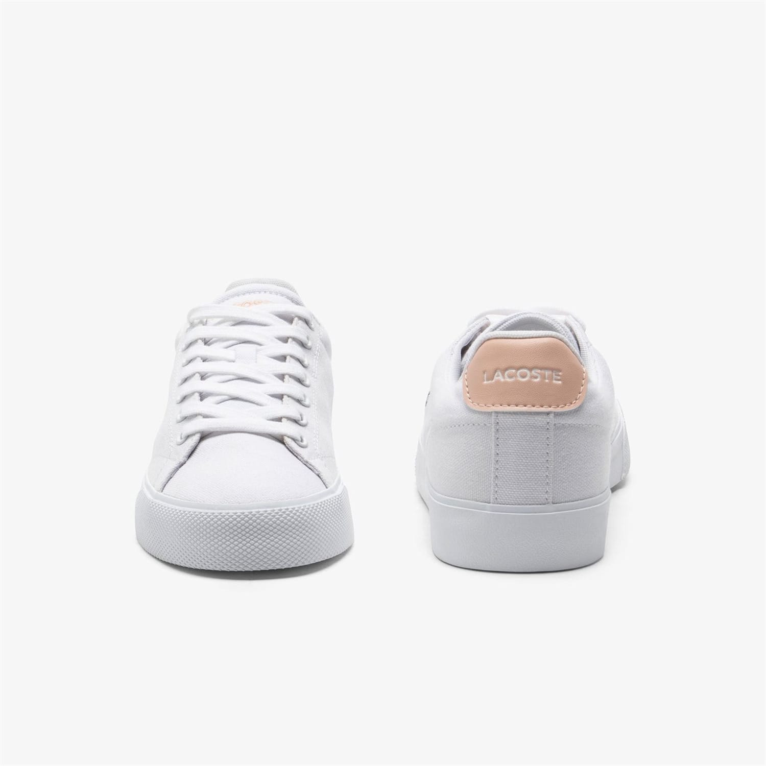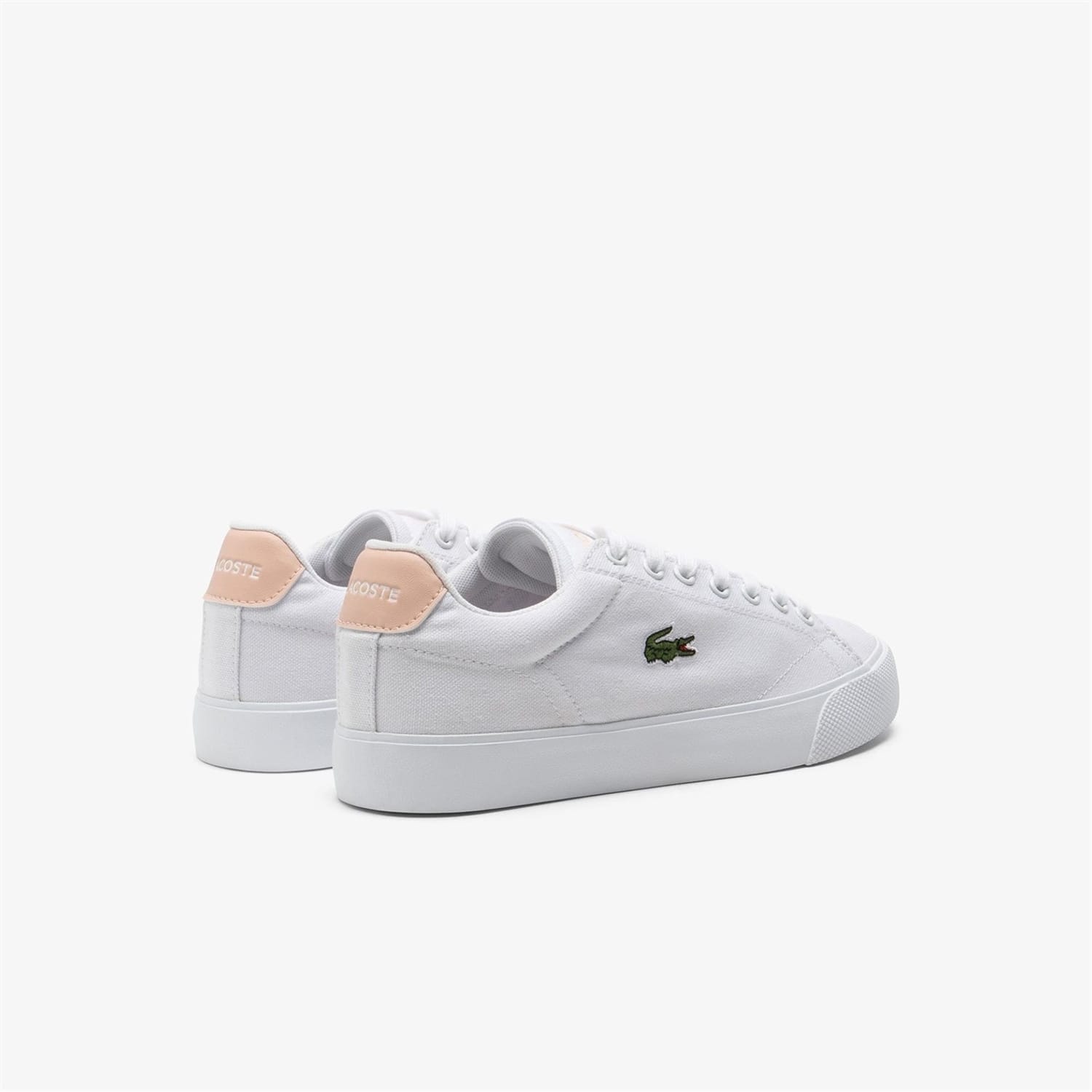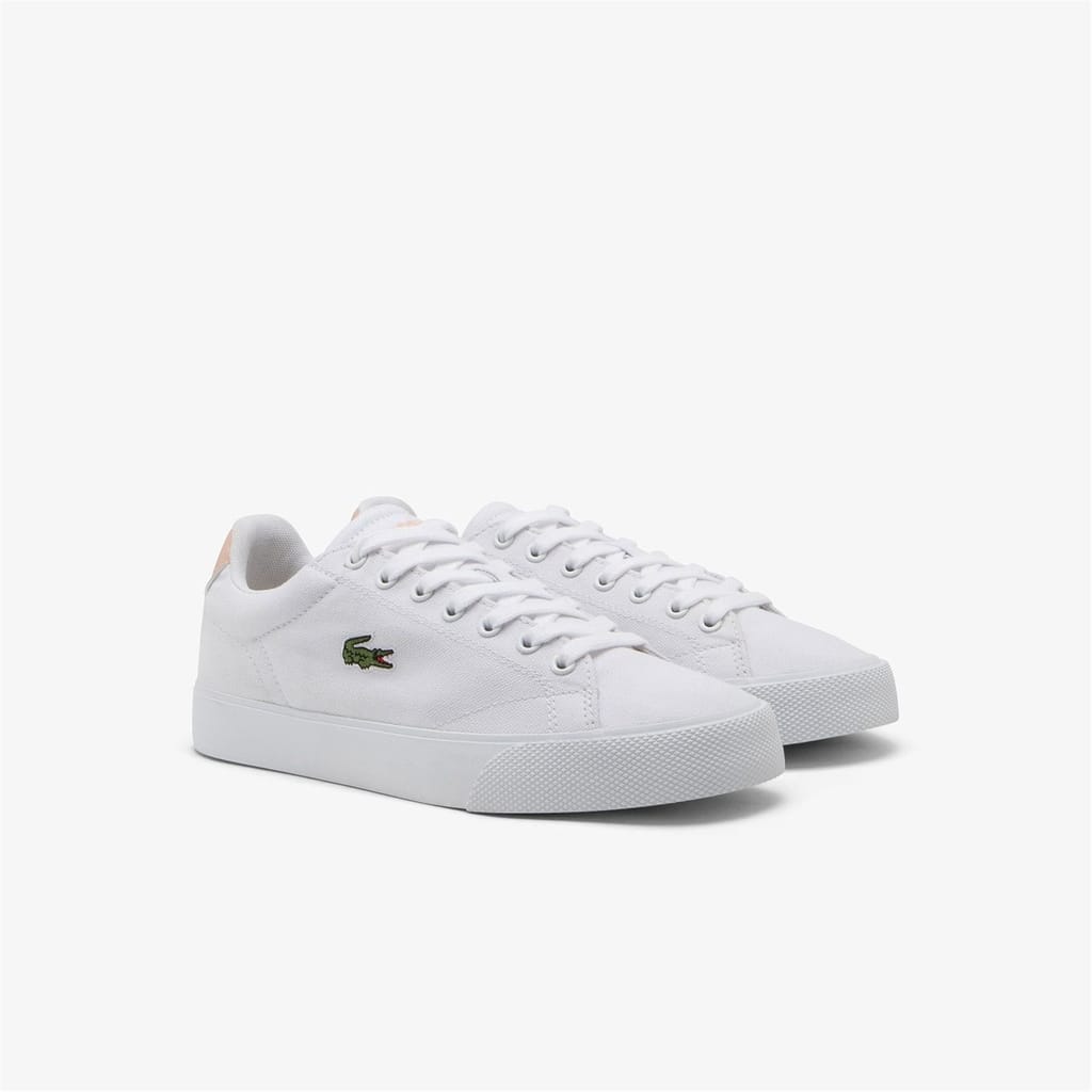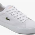 Women's Lerond Set Leather Sneakers Canvas upper Ortholite footbed, foam compound for superior cushioning Textile lining Standard and recycled rubber outsole Embroidered Lacoste word logo on quarter and tongue