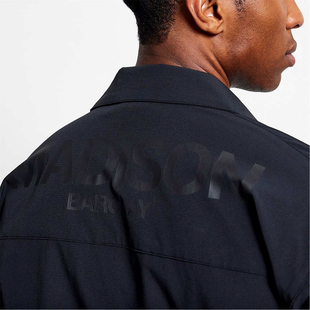 The Madison Barclay Flat Iron Zip Overshirt is crafted from a high quality nylon elastane blend, With a tonal black Madison heat transfer back design for a subtle finish .