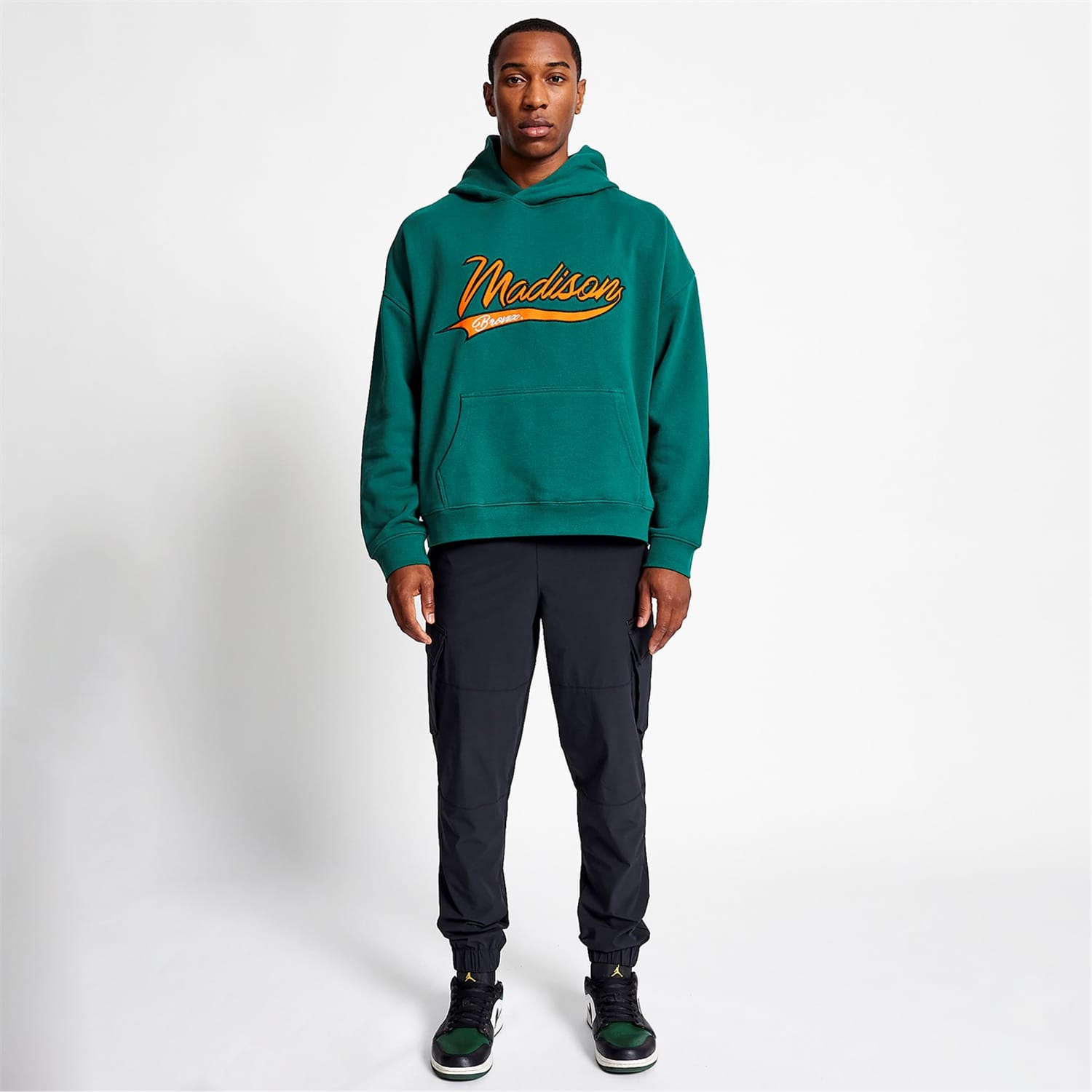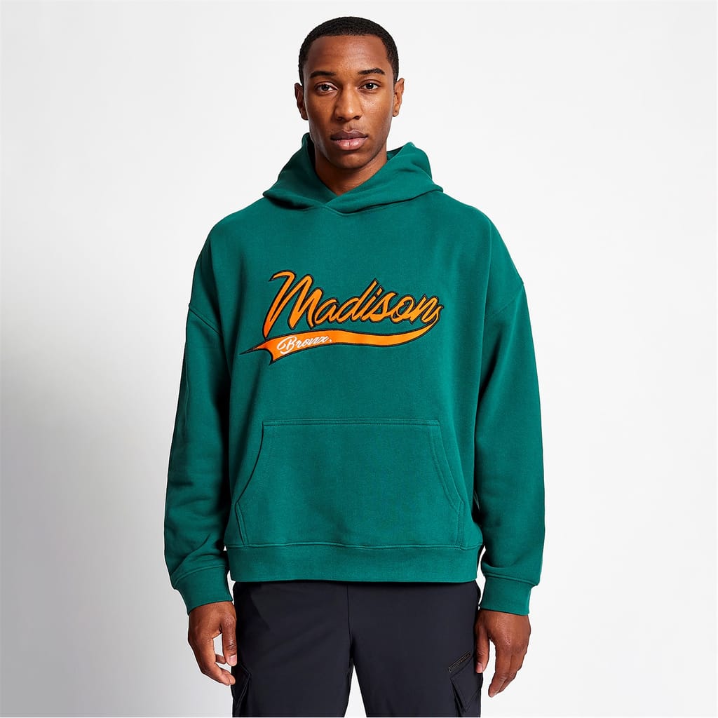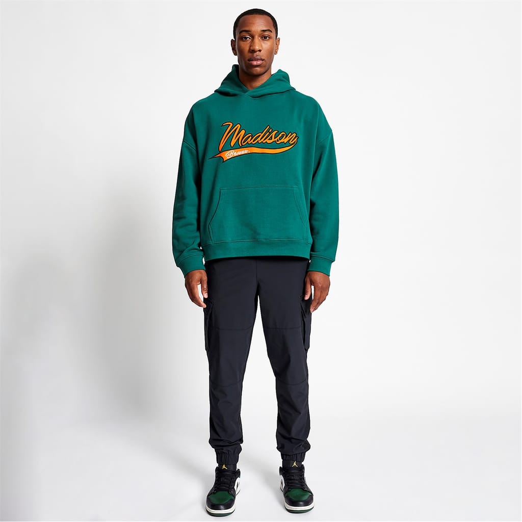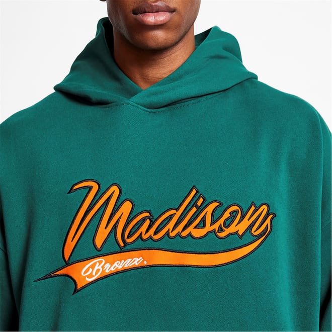 Introducing the Stadium Hoodie from Madison Barclay. Crafted from heavy weight cotton with a slight oversized fit. The hoodie features with our signature Madison Barclay branding in a contrasting orange. Finished with ribbed hems and cuffs.
